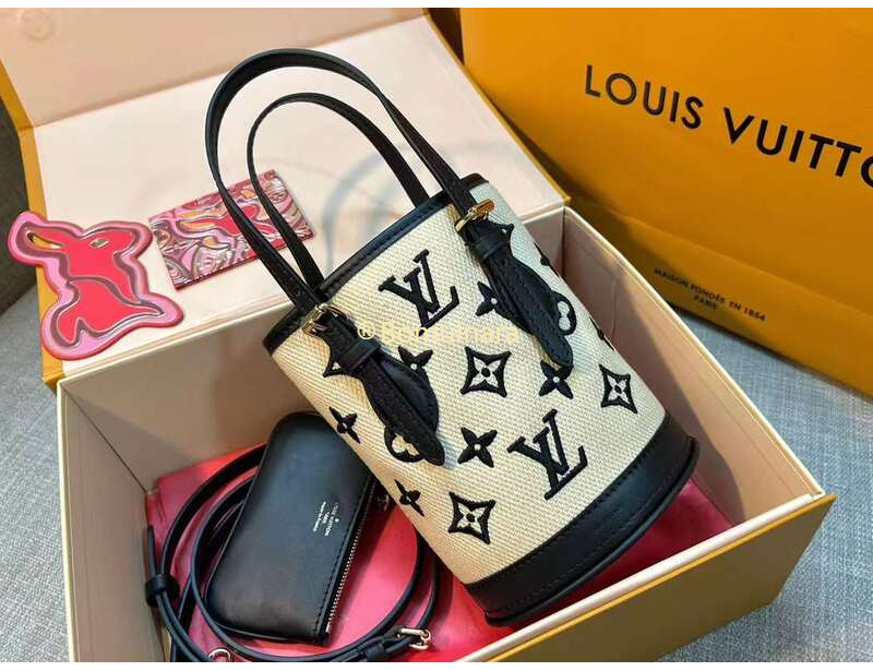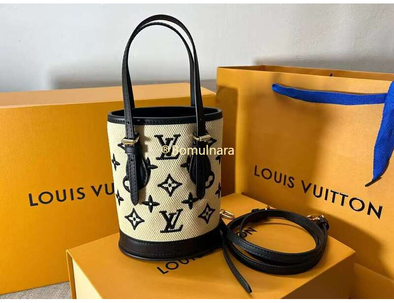 모노그램 로터스 면 나노 버킷 백