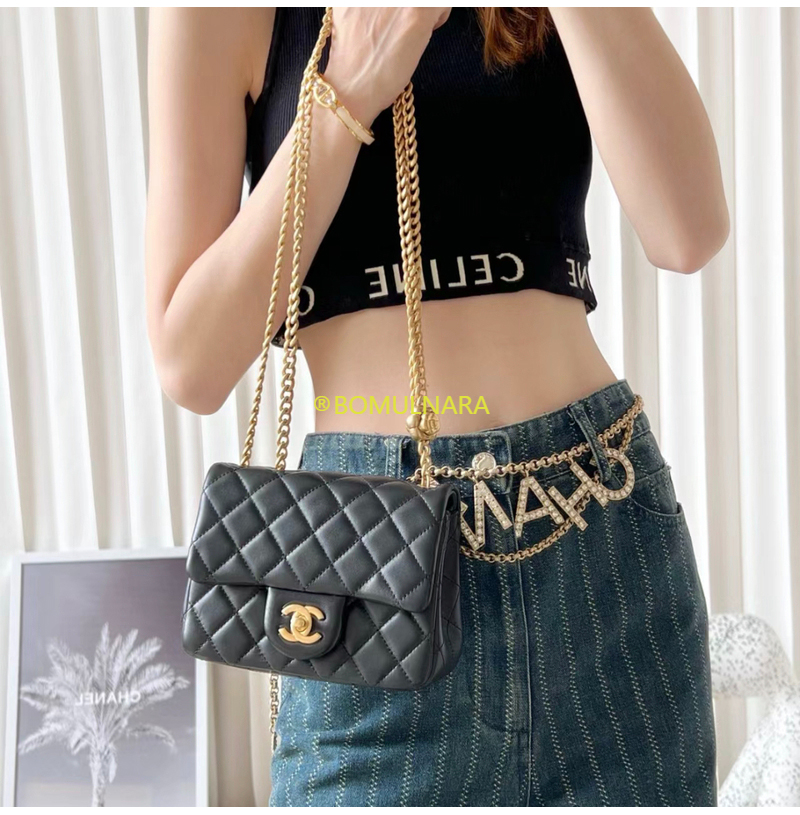 [스페셜오더]CHANEL-AS1786 샤넬 블랙 미니 앤틱 골드 참 플랩 백