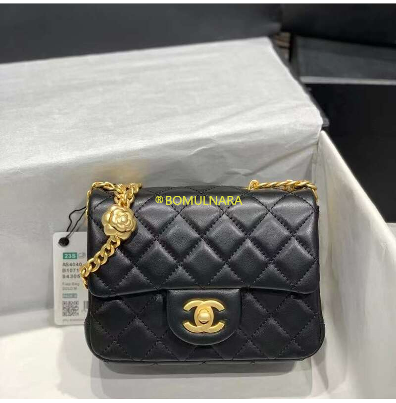 [스페셜오더]CHANEL-AS4040 샤넬 23S 블랙 램스킨 까멜리아 쁘띠삭 골드볼 플랩백