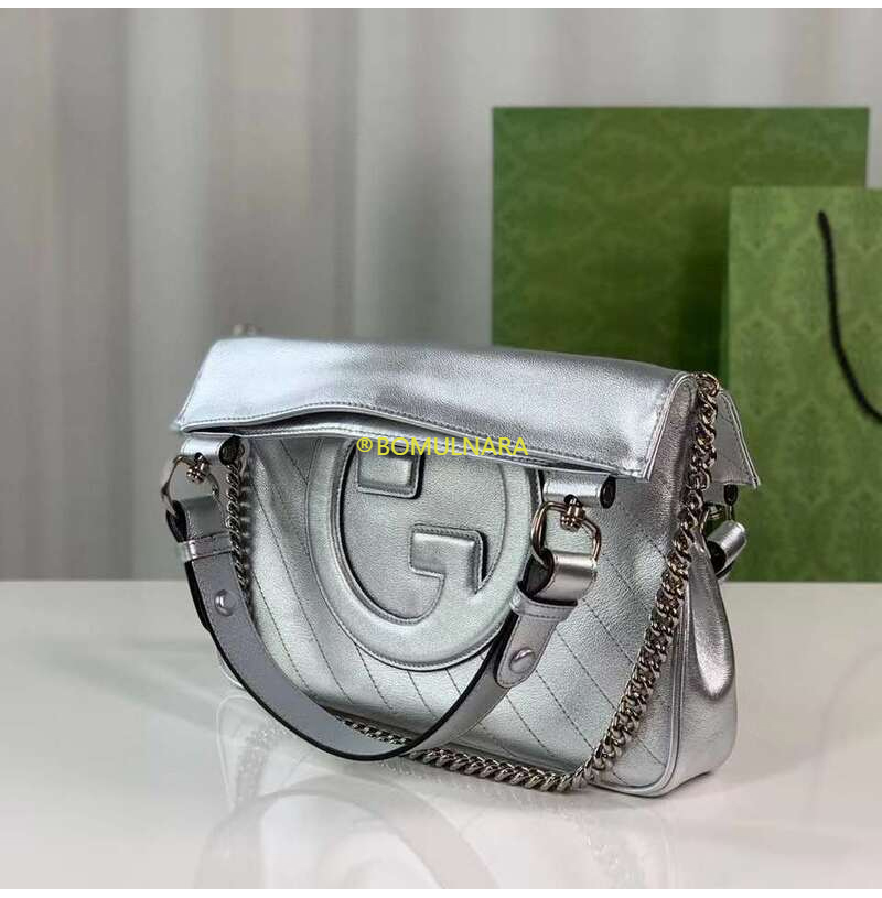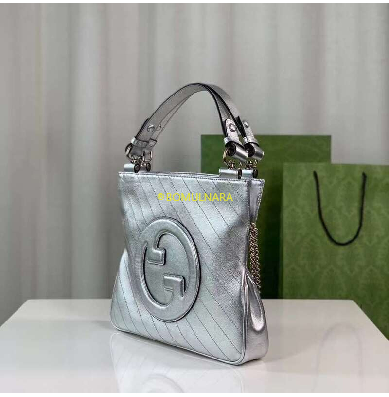 [스페셜오더]GUCCI-751518 8106 구찌 메탈릭 실버 라운드 인터로킹 G 블론디 스몰 토트백