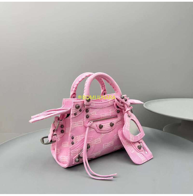 [스페셜오더]BALENCIAGA-700940 발렌시아가 핑크 데님 BB 모노그램 NEO CAGOLE XS 핸드백