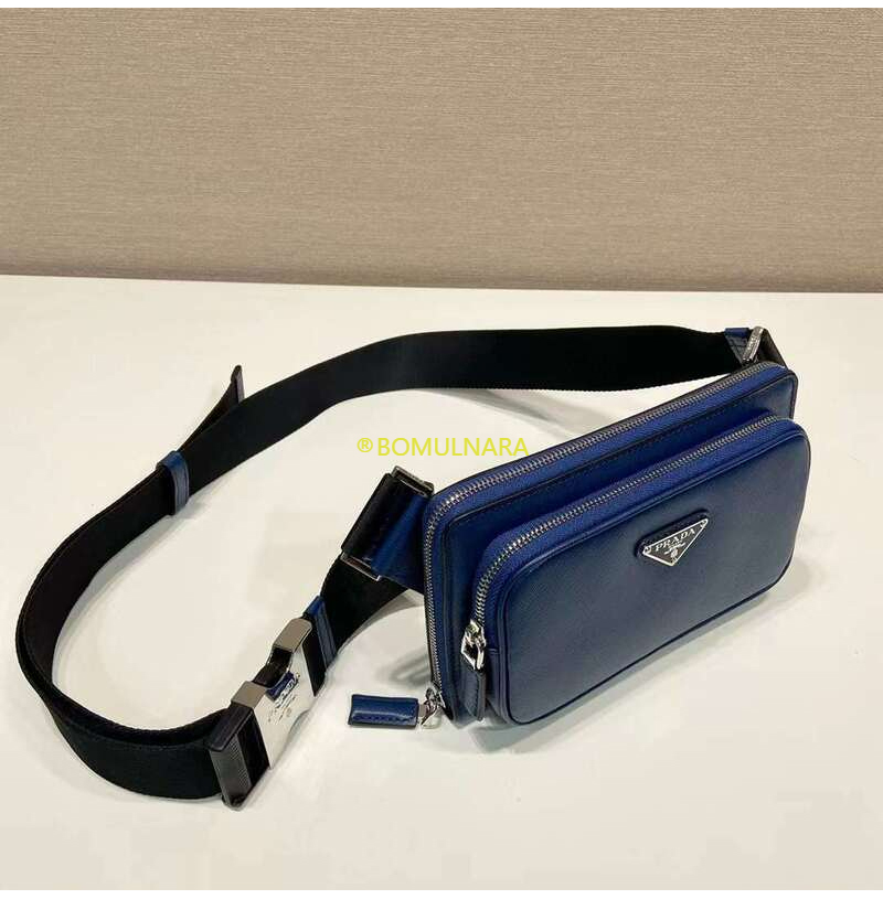 [스페셜오더]PRADA-2VH156 프라다 블루 사피아노 가죽 하이브리드 벨트 백 21CM