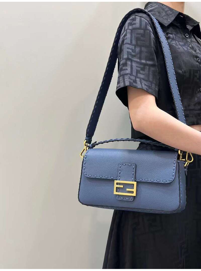 [스페셜오더]FENDI-8BR600 펜디 블루 스웨이드 가죽 바게트백