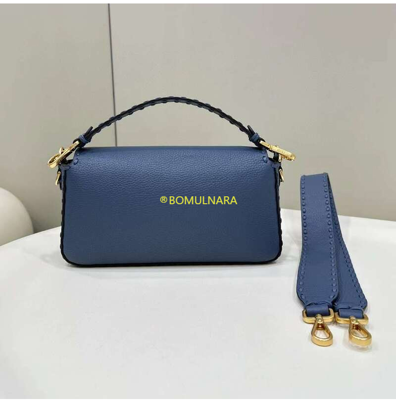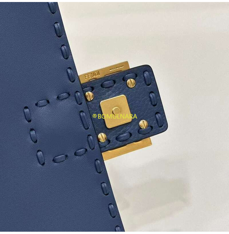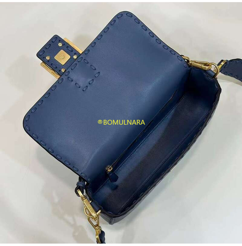 [스페셜오더]FENDI-8BR600 펜디 블루 오버사이즈 탑스티치 셀러리아 미디엄 바게트 백 27CM