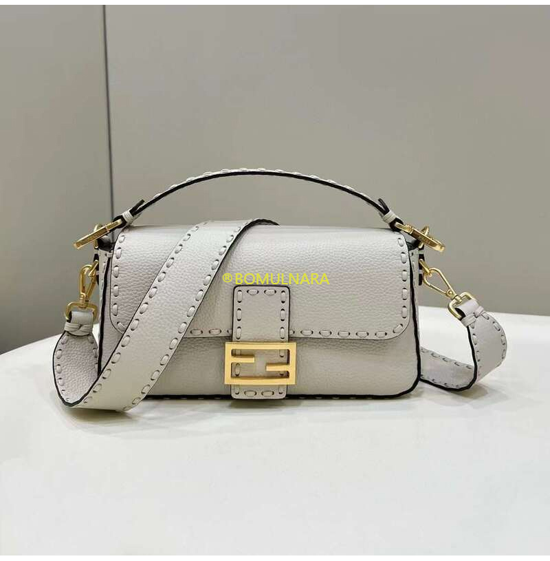 [스페셜오더]FENDI-8BR600 펜디 그레이 풀 그레인 가죽 미디엄 바게트 백