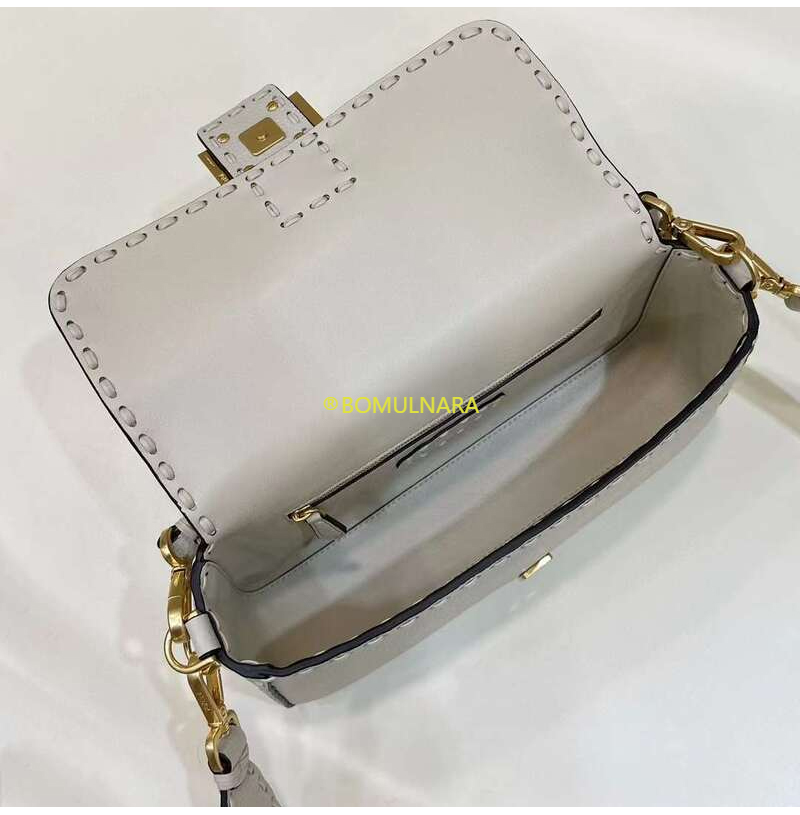 [스페셜오더]FENDI-8BR600 펜디 베이지 오버사이즈 탑스티치 셀러리아 미디엄 바게트 백 27CM
