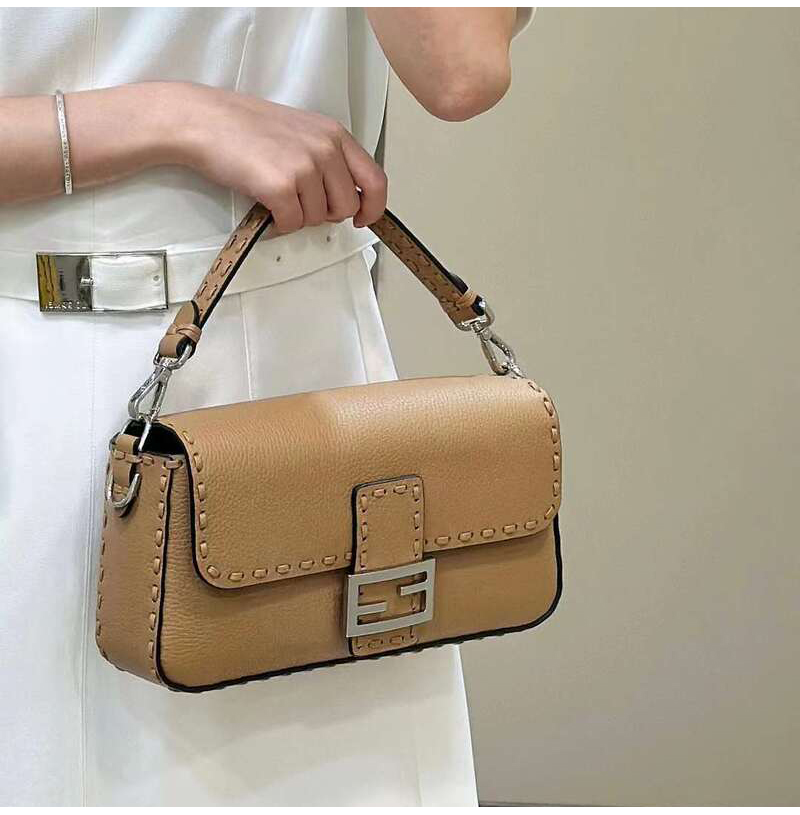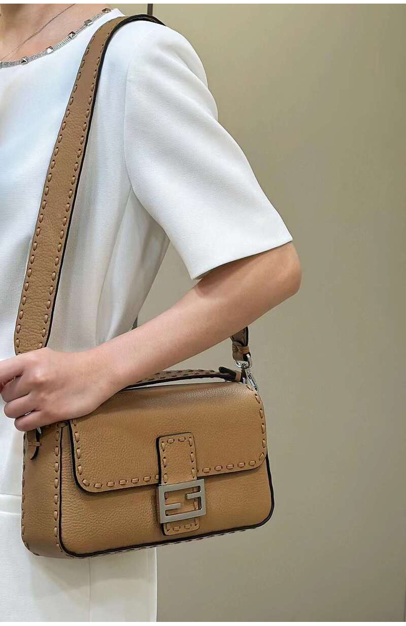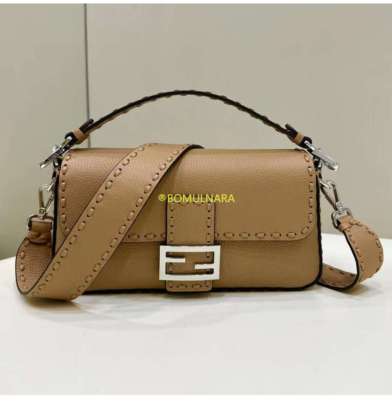 [스페셜오더]FENDI-8BR600 펜디 카멜리아 오버사이즈 탑스티치 셀러리아 미디엄 바게트 백 27CM