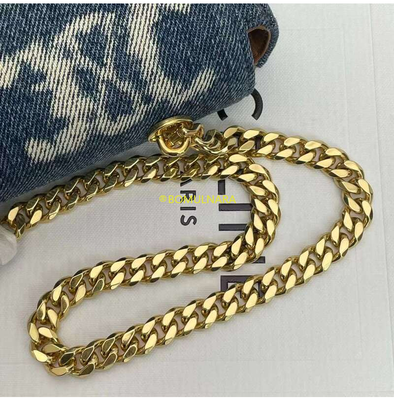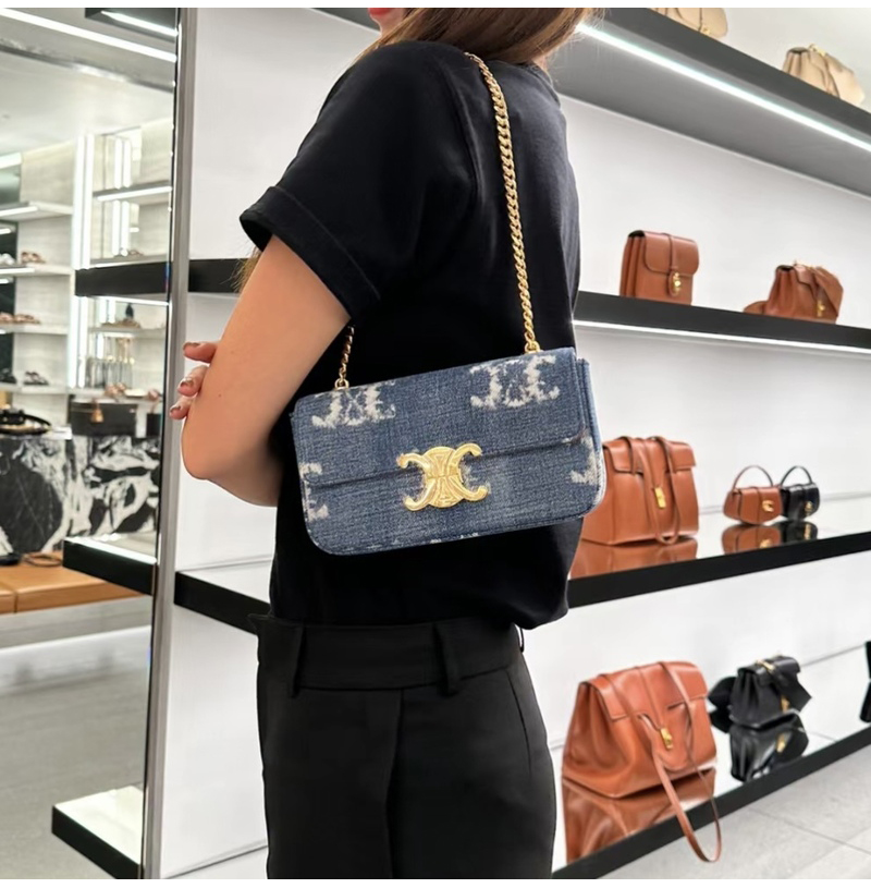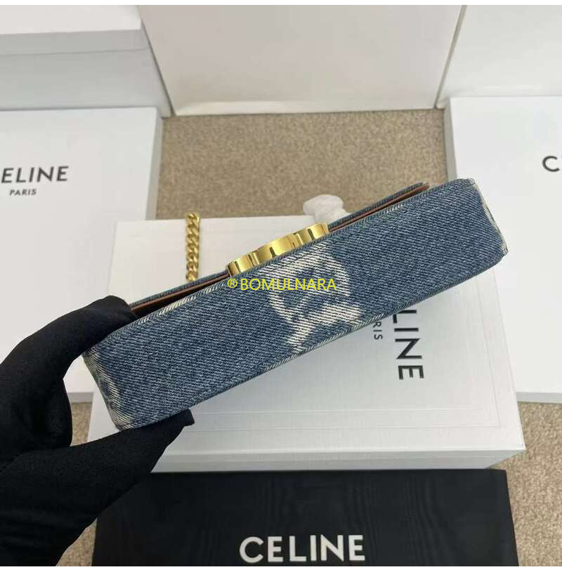 [스페셜오더]CELINE-197992 셀린느 네이비/탠 트리옹프 데님 캔버스 체인 숄더백