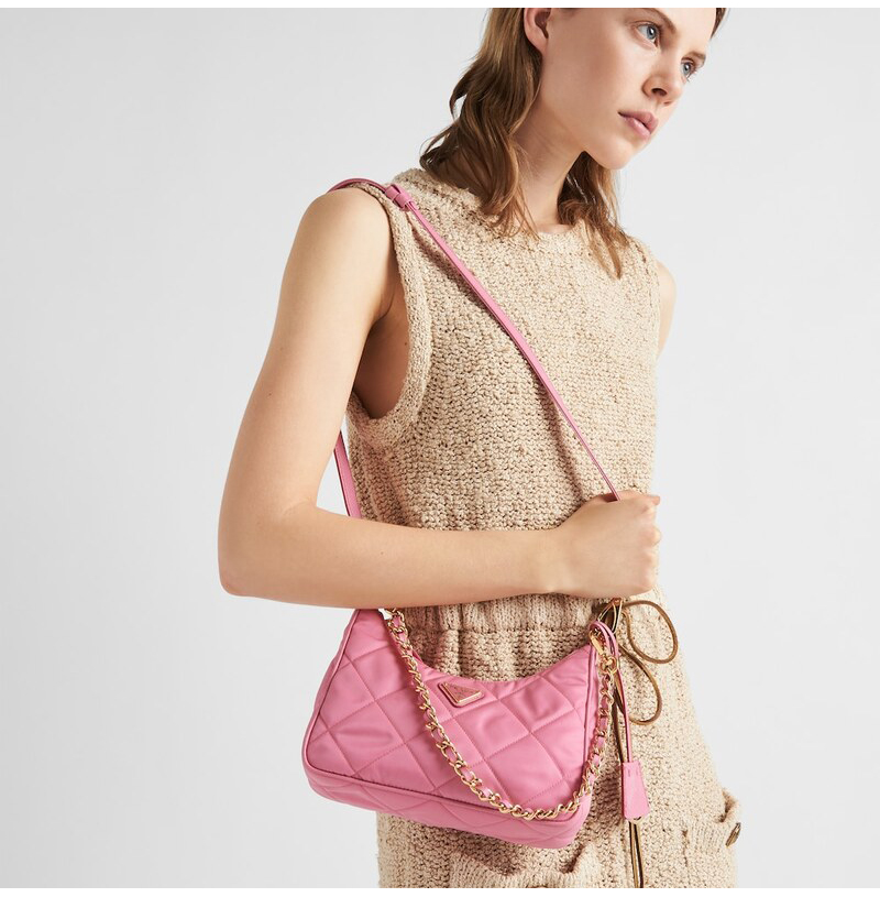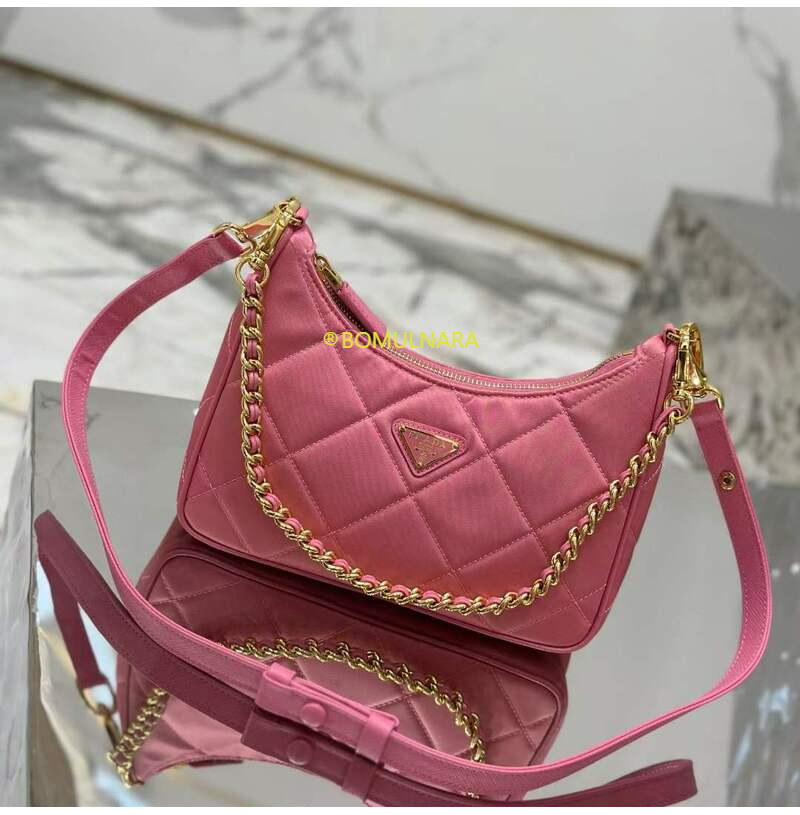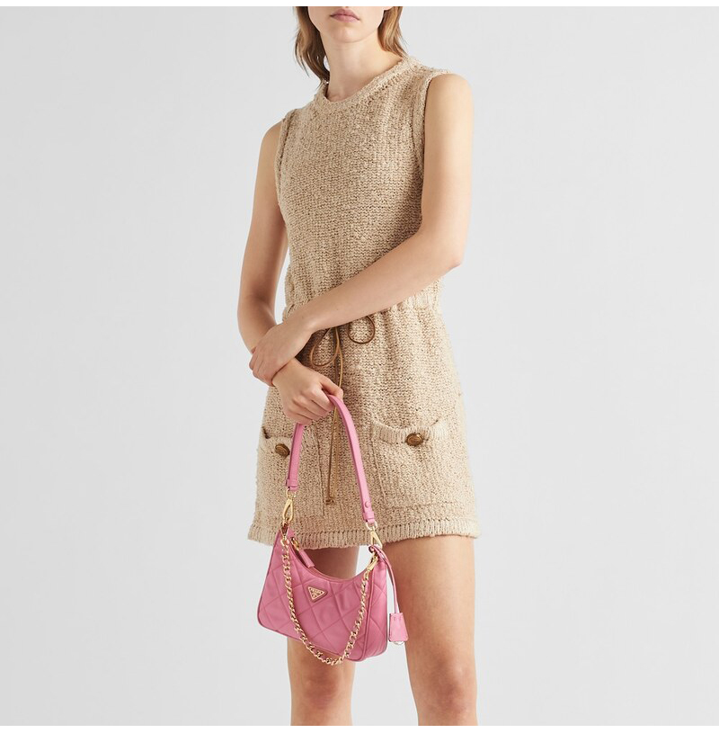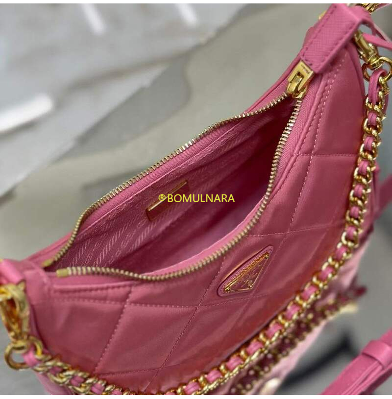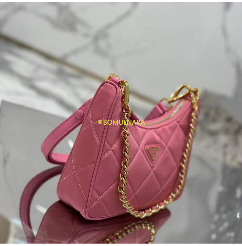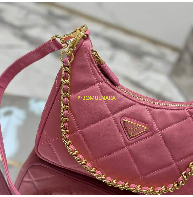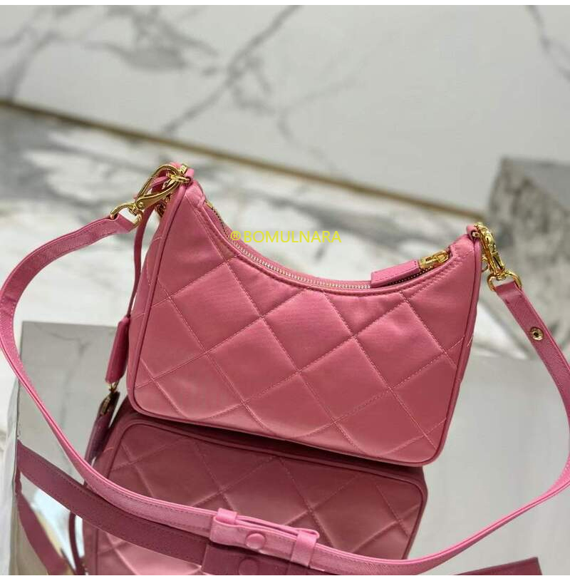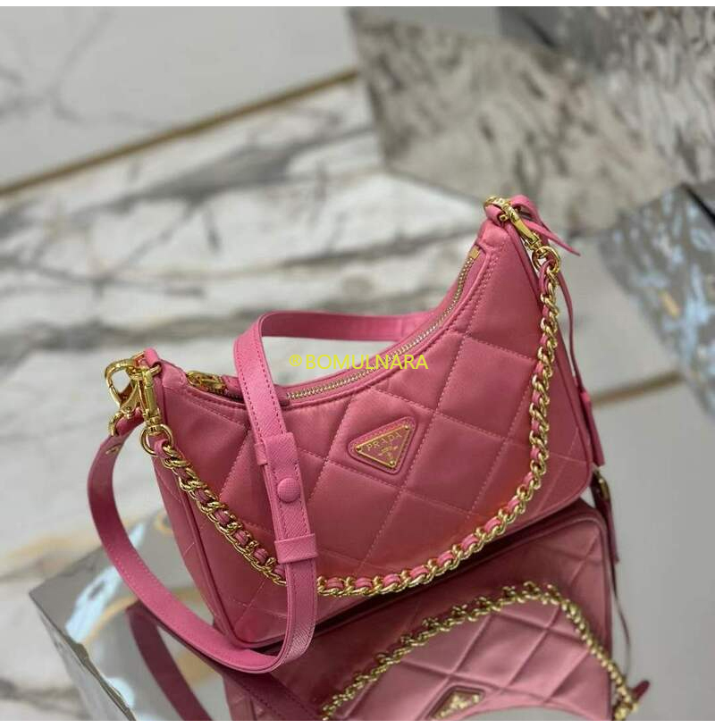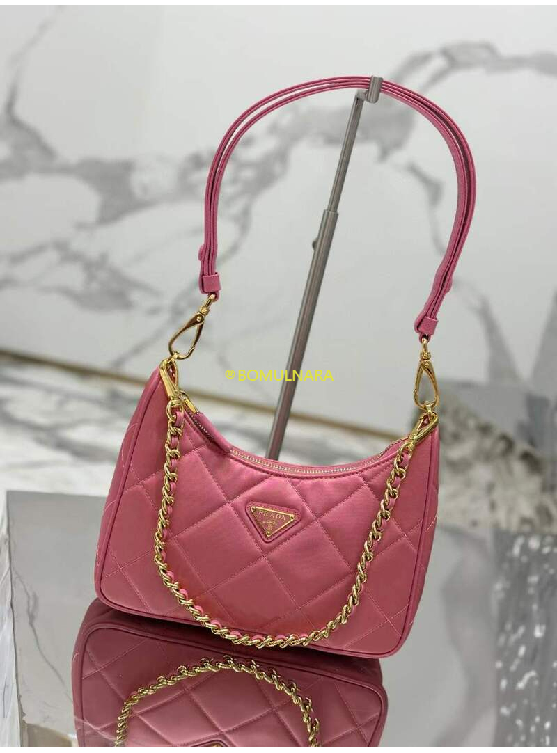 [스페셜오더]PRADA-1BC204 프라다 베고니아 핑크 패딩 탑 스티치 리나일론 미니백 22CM