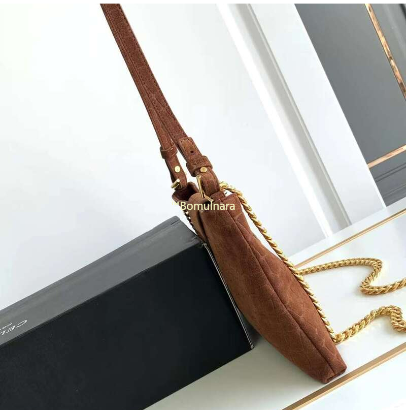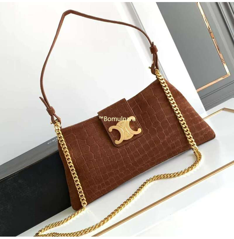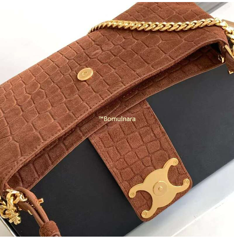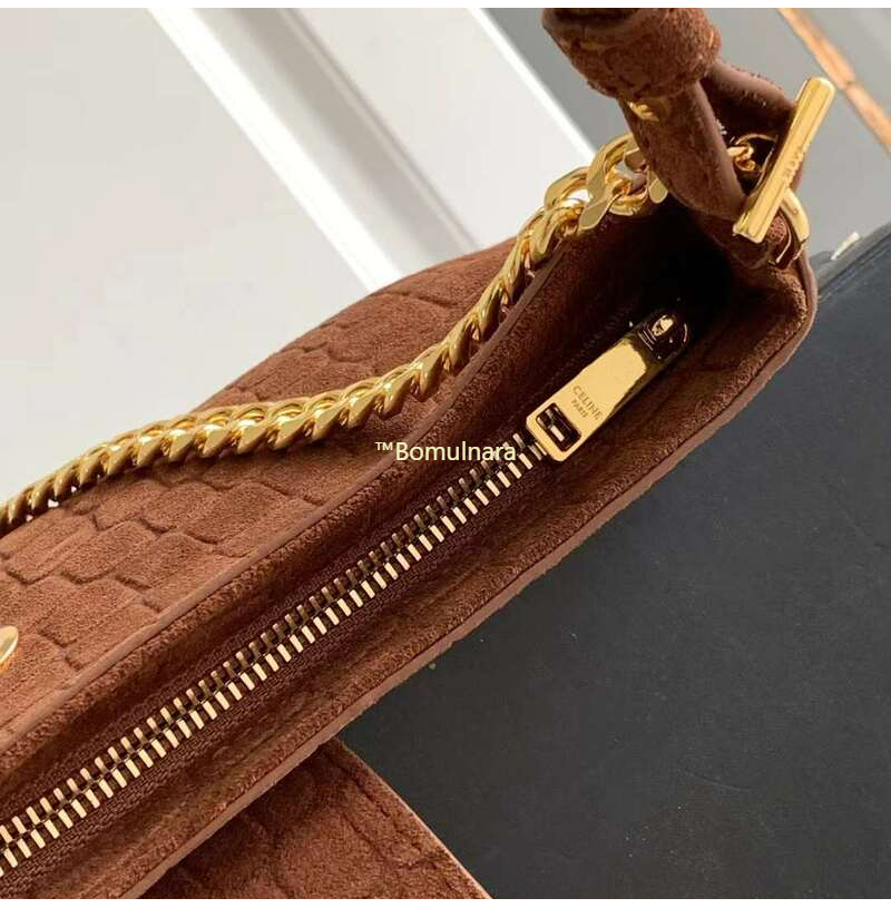 [스페셜오더]CELINE-113673 셀린느 브라운 트리옹프 크로커다일 WILTERN 월튼 체인 클러치 숄더백 31CM