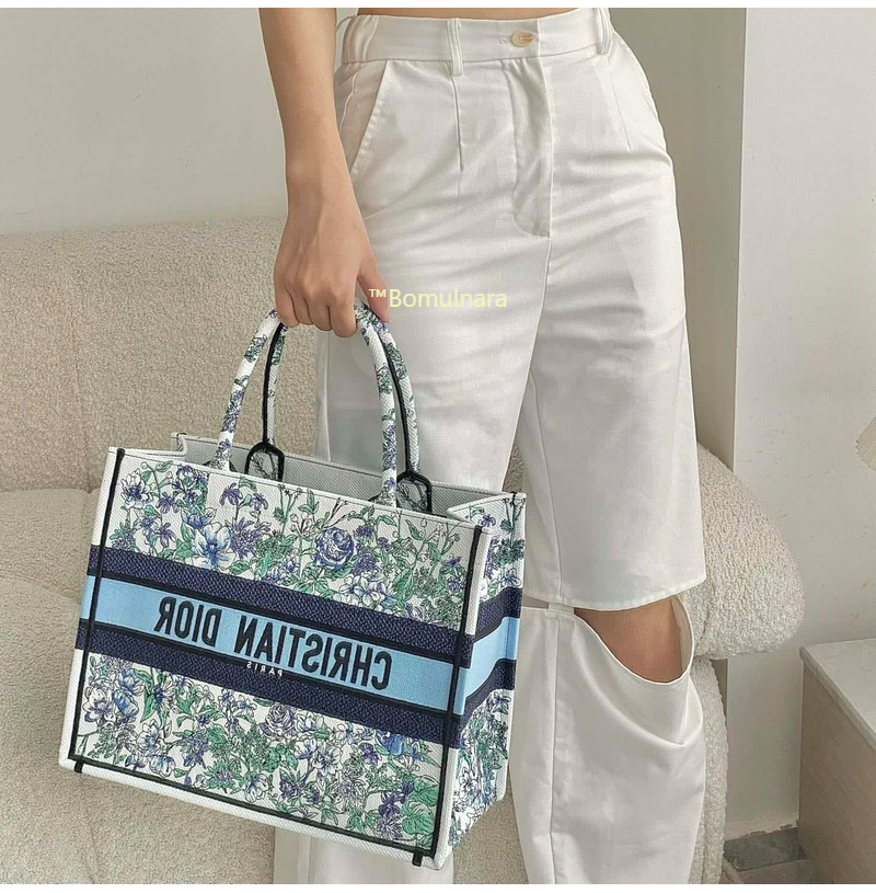 [스페셜오더]DIOR-M1296 디올 화이트 멀티 컬러 Dior Petites Fleurs 자수 BOOK TOTE 미디엄 백 36CM