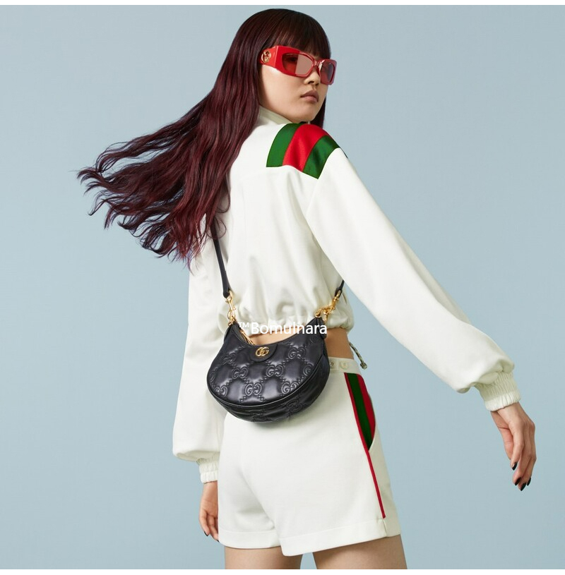 더블G엠블럼으로 장식한 블랙GG마틀라세 레더