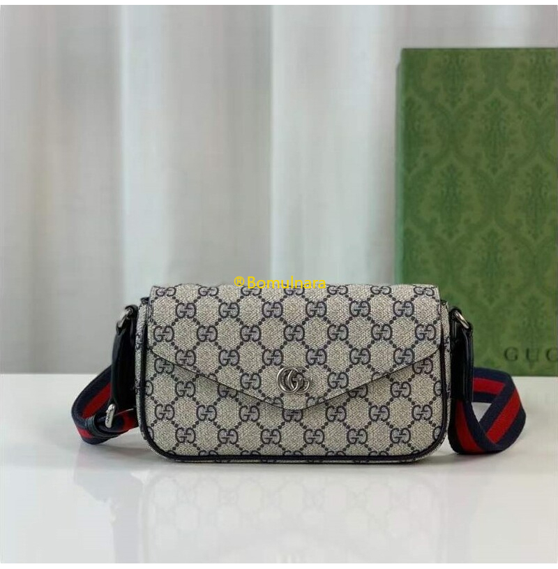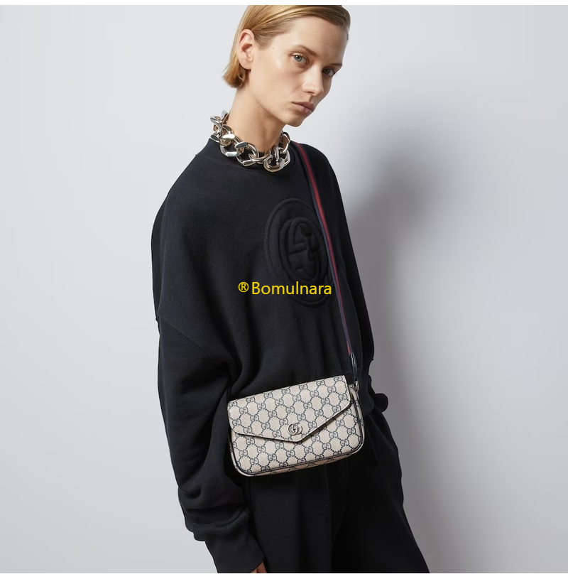 미니백은 더블 G 메탈 장식과 웹(Web) 숄더