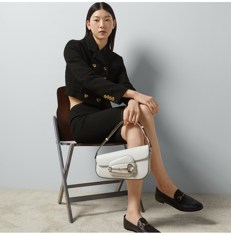 비대칭 형태가 특징인 블랙 레더 구찌 홀스빗