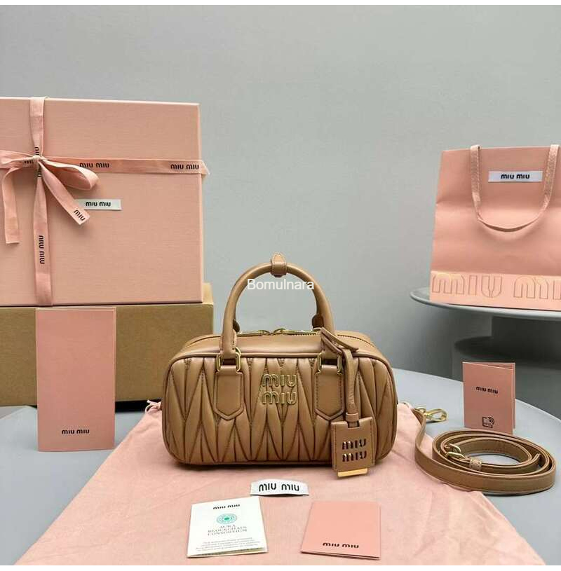 [스페셜오더]MIU MIU-5BB142 미우미우 캐러멜 마테라쎄 아르카디 스몰 탑 핸들 백 22cm