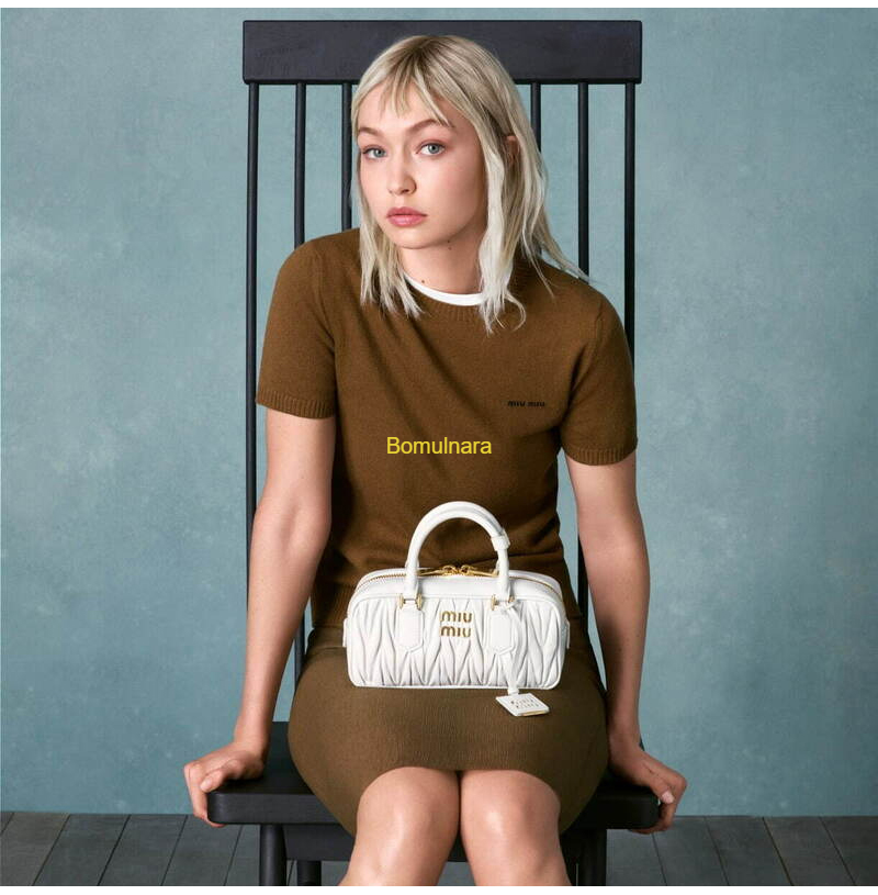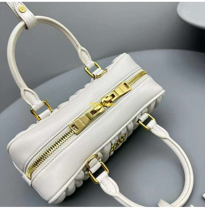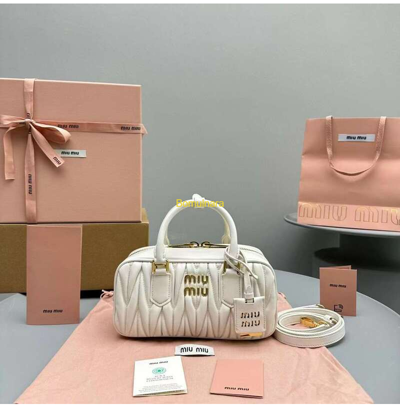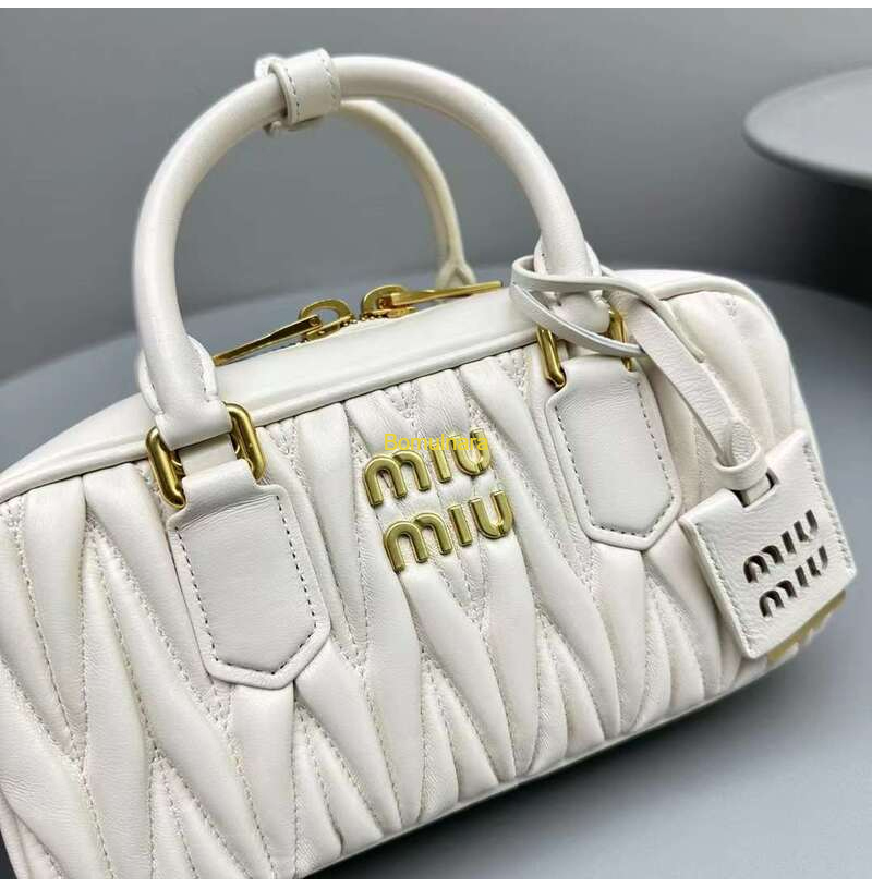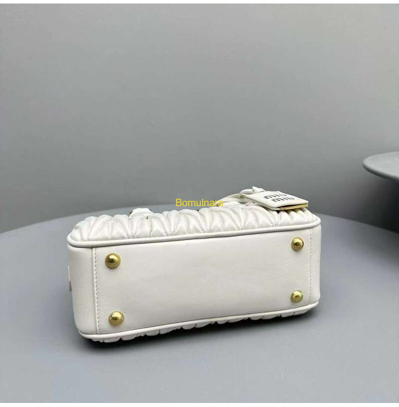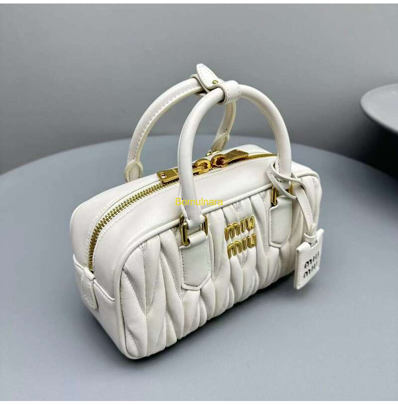 [스페셜오더]MIU MIU-5BB142 미우미우 화이트 마테라쎄 아르카디 스몰 탑 핸들 백 22cm