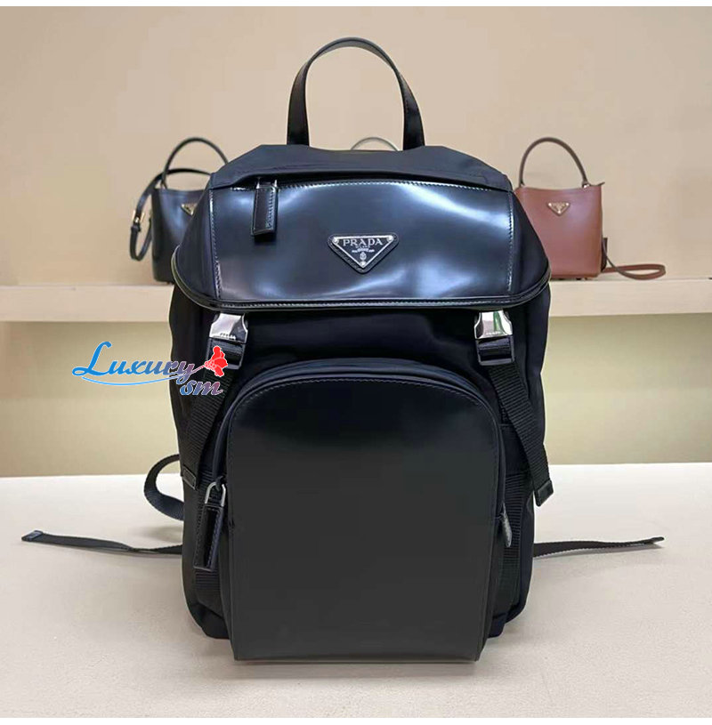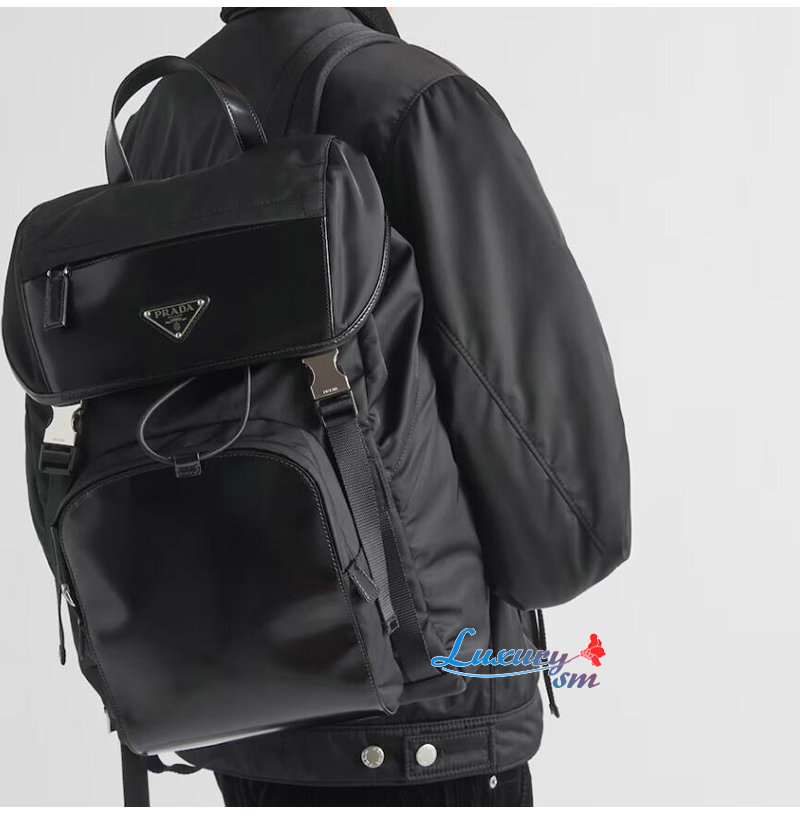 [스페셜오더]PRADA-2VZ135 프라다 블랙 리나일론 브러쉬드 가죽 백팩