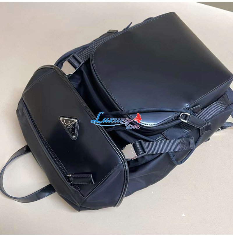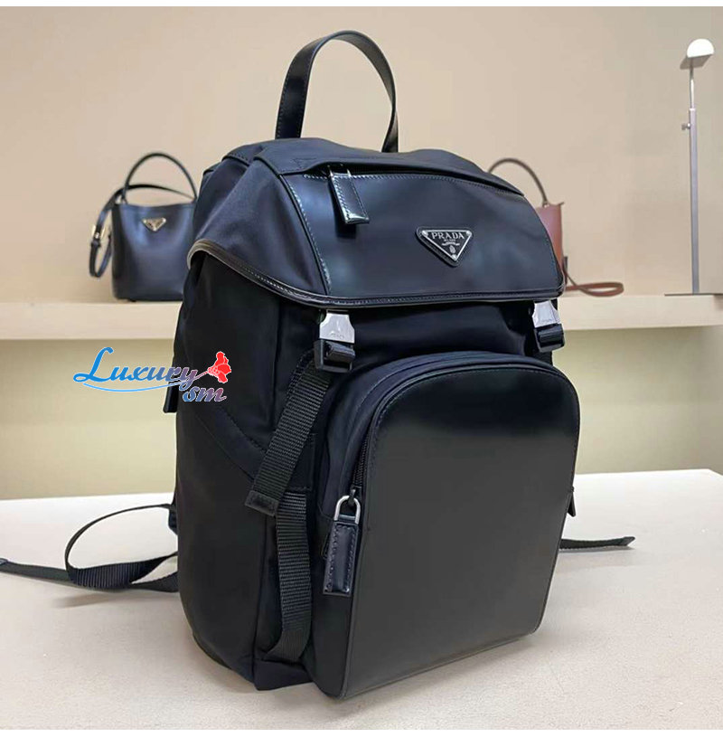 [스페셜오더]PRADA-2VZ135 프라다 블랙 리나일론 사피아노 가죽 백팩 #프라다레플리카백팩