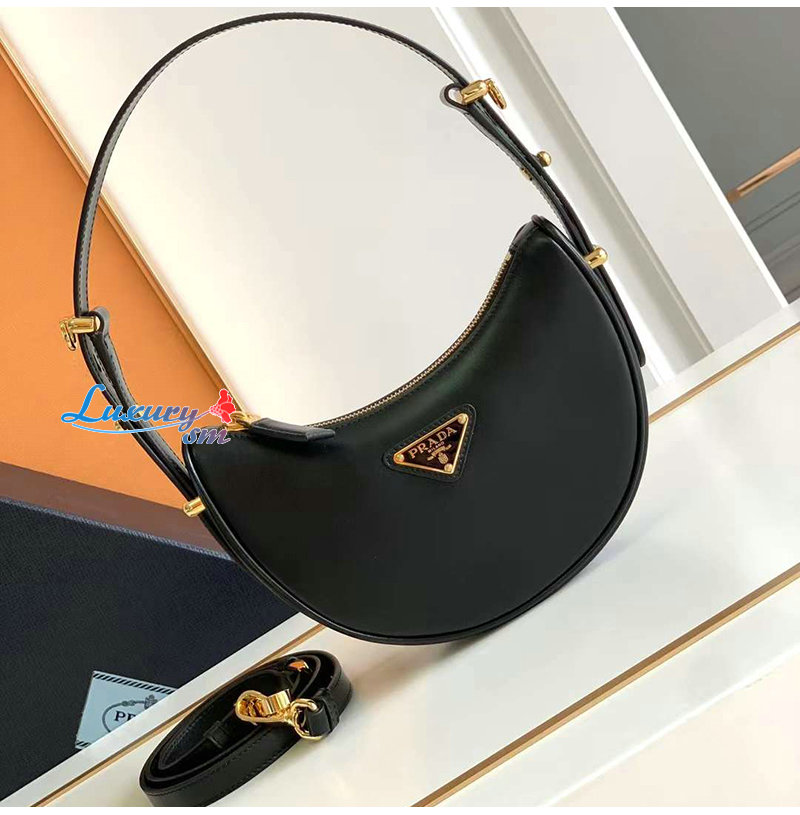 [스페셜오더]PRADA-1BC199 프라다 블랙 아르케 리나일론 브러쉬드 가죽 미니 숄더백
