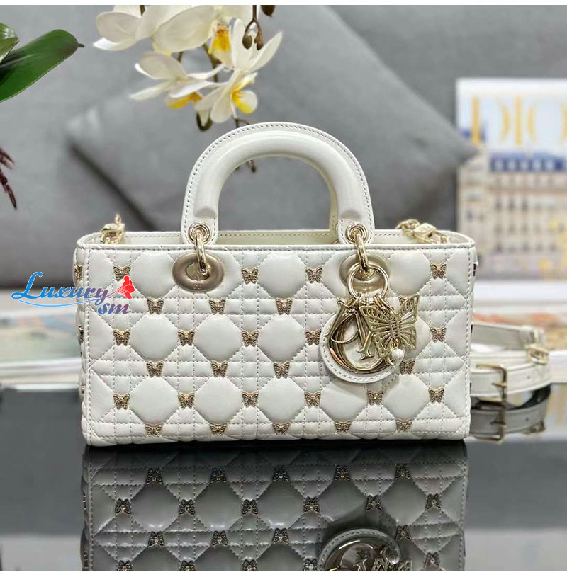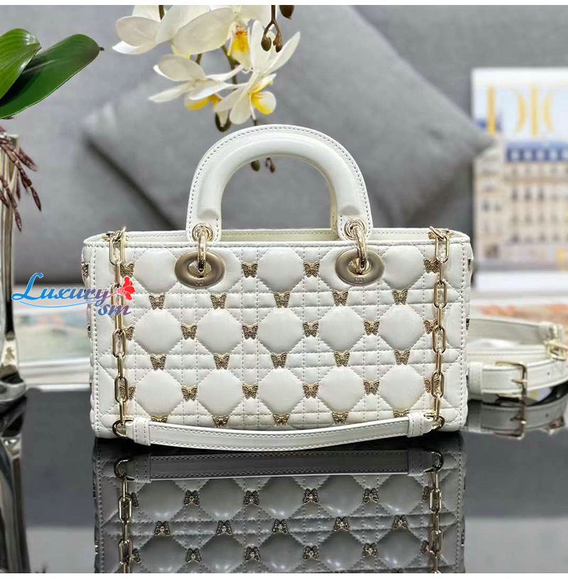 [스페셜오더]DIOR-M0540 디올 화이트 까나쥬 나비 스터드 Lady D-Joy 미디엄 백