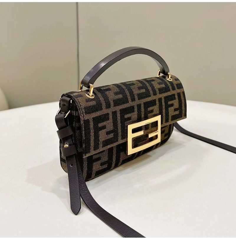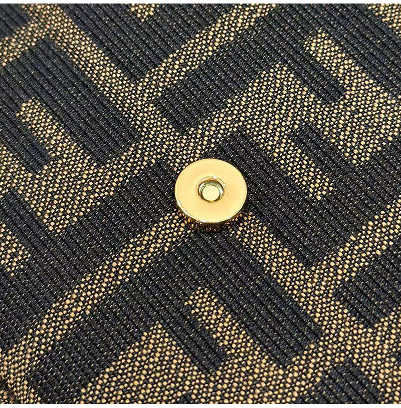 브라운 컬러 자카드 FF 모티프가 있는 패브릭 소재.