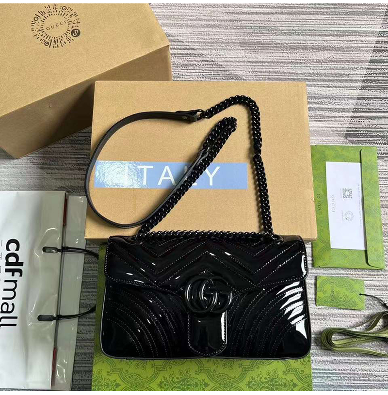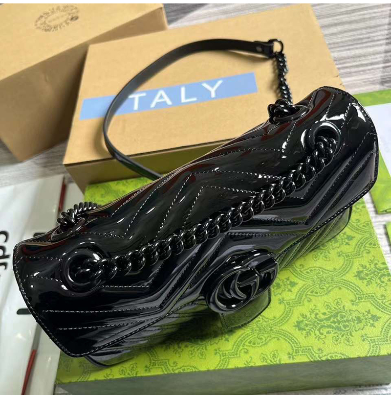 [스페셜오더]Gucci-443497 구찌 블랙 페이던트 GG 마몽 스몰 숄더백 26cm
