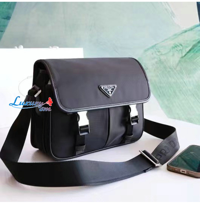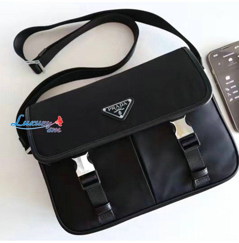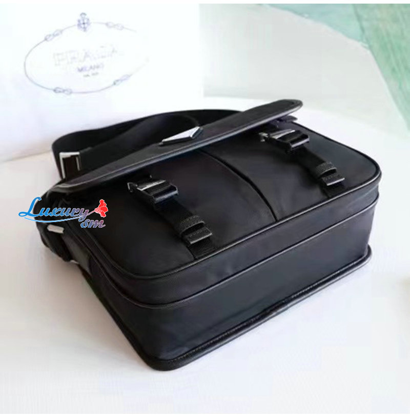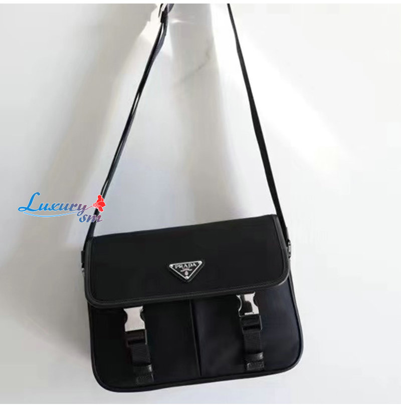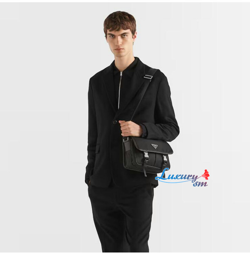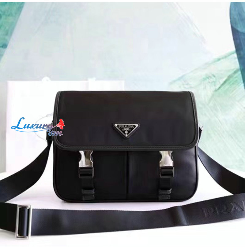 PRADA-2VD769/VA0768 프라다 사피아노 가죽 트림 나일론 플랩 메신져 백 블랙