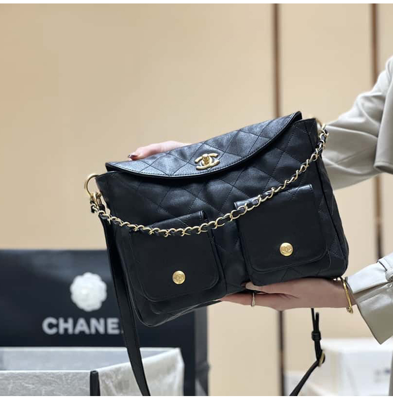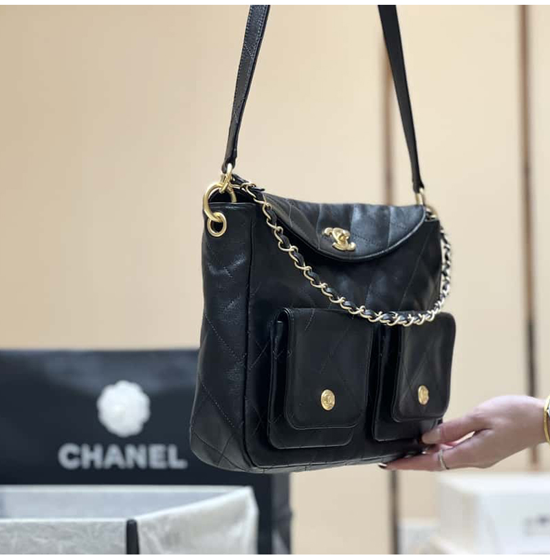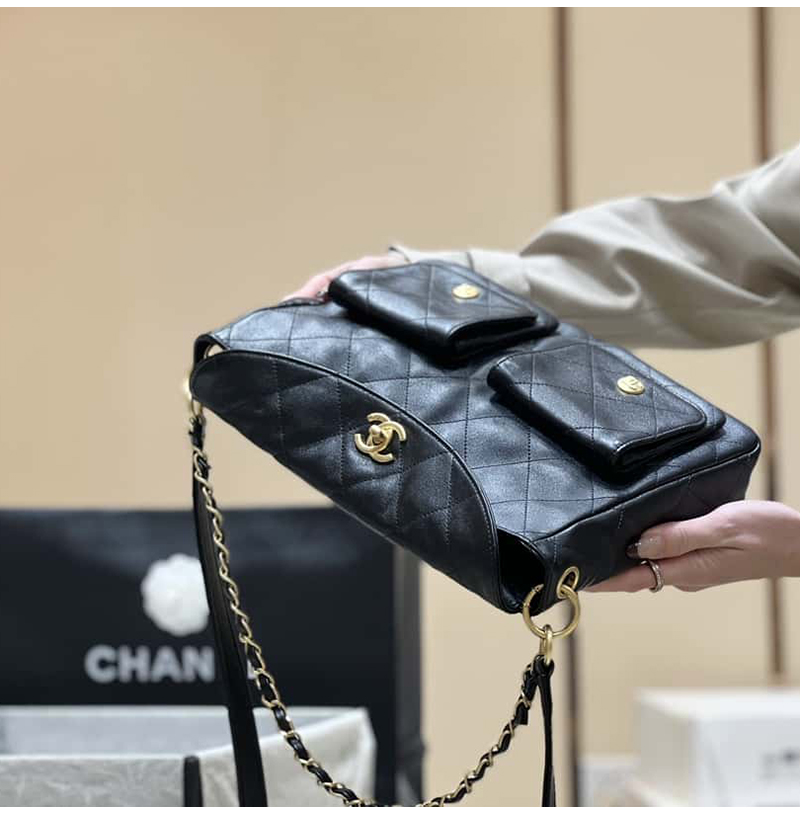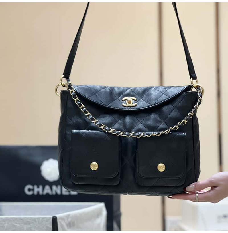 [스페셜오더]CHANEL-AS4743 샤넬 블랙 카프스킨 스몰 호보 백 24cm