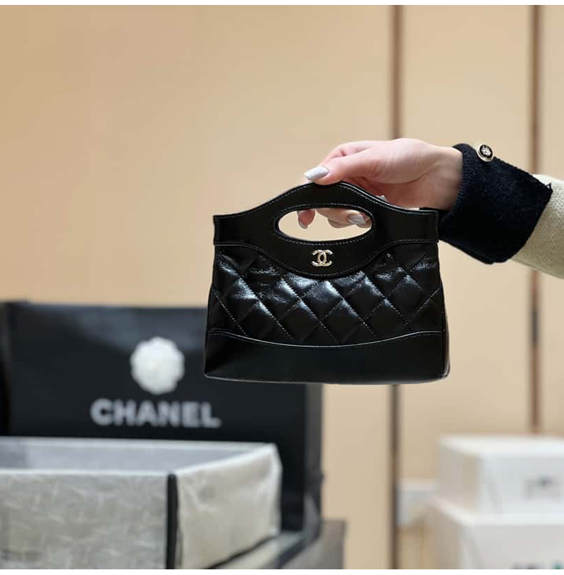[스페셜오더]CHANEL-AP3875 샤넬 블랙 샤이니 카프스킨 31 나노 클러치&체인 13cm