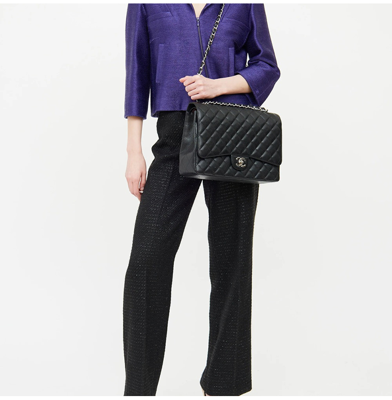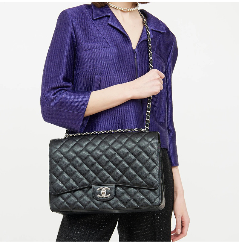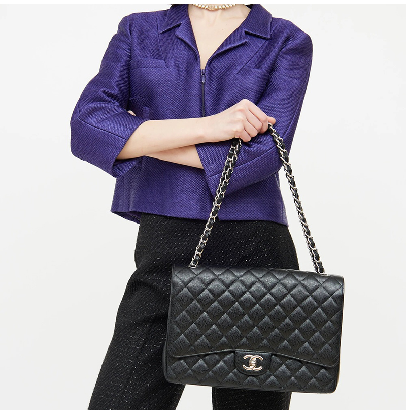 [스페셜오더]CHANEL-A58601 샤넬 클래식 블랙 실버 캐비어 맥시 더블 플랩 백 33cm