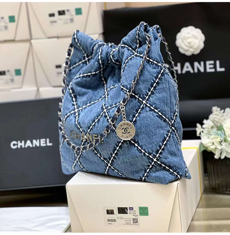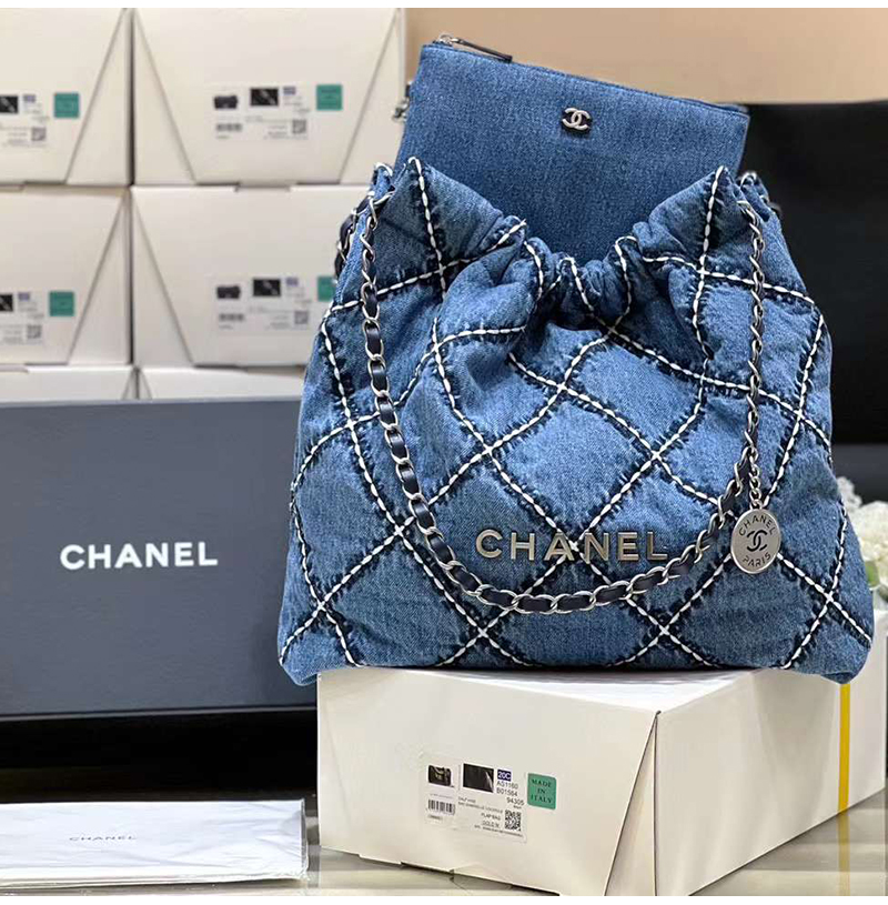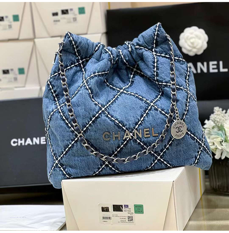 [스페셜오더]CHANEL-AS3260 샤넬 24P 블루 데님 스티치 22 스몰 핸드백 35cm