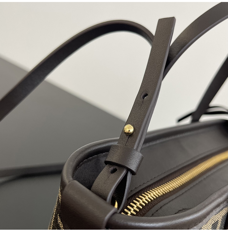 브라운 FF 자카드 패브릭 / 카프스킨 트리밍