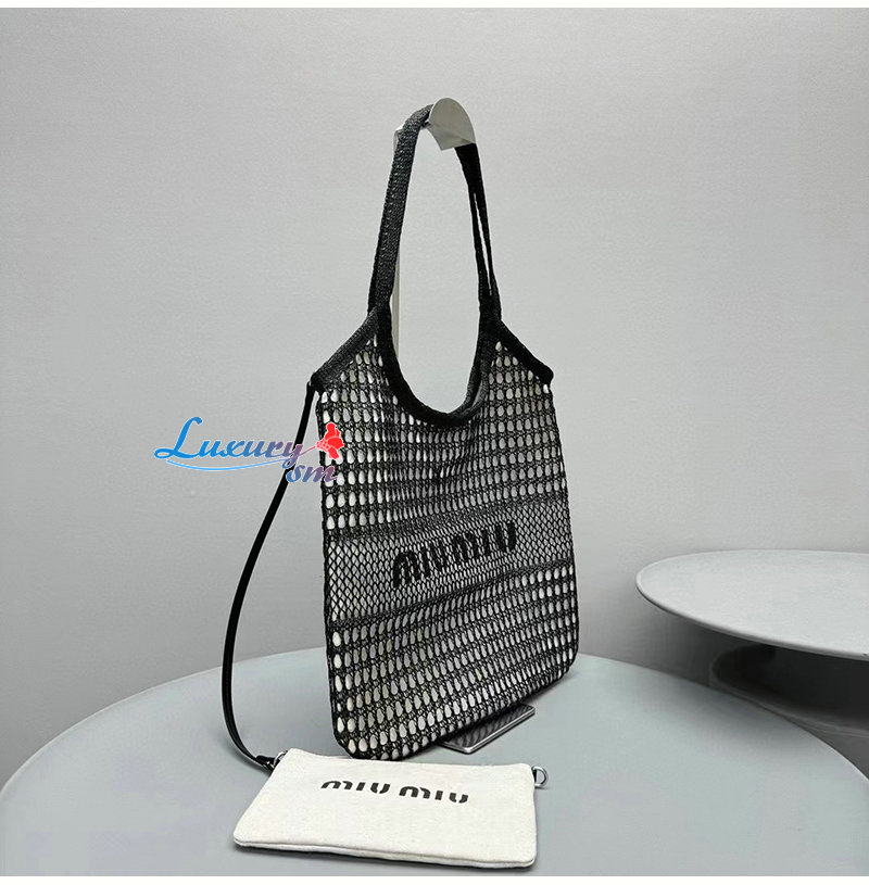 [스페셜오더]MIU MIU-5BG231 미우미우 블랙 리넨 미니 토트 백