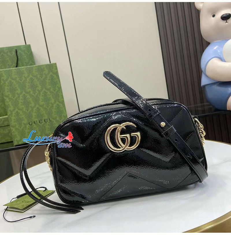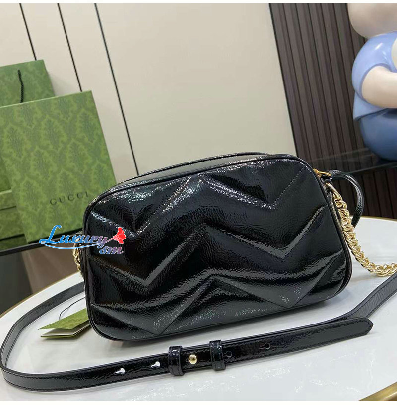 [스페셜오더]GUCCI-802448 1000 구찌 블랙 페이턴트 가죽 GG 마몽 스몰 숄더백