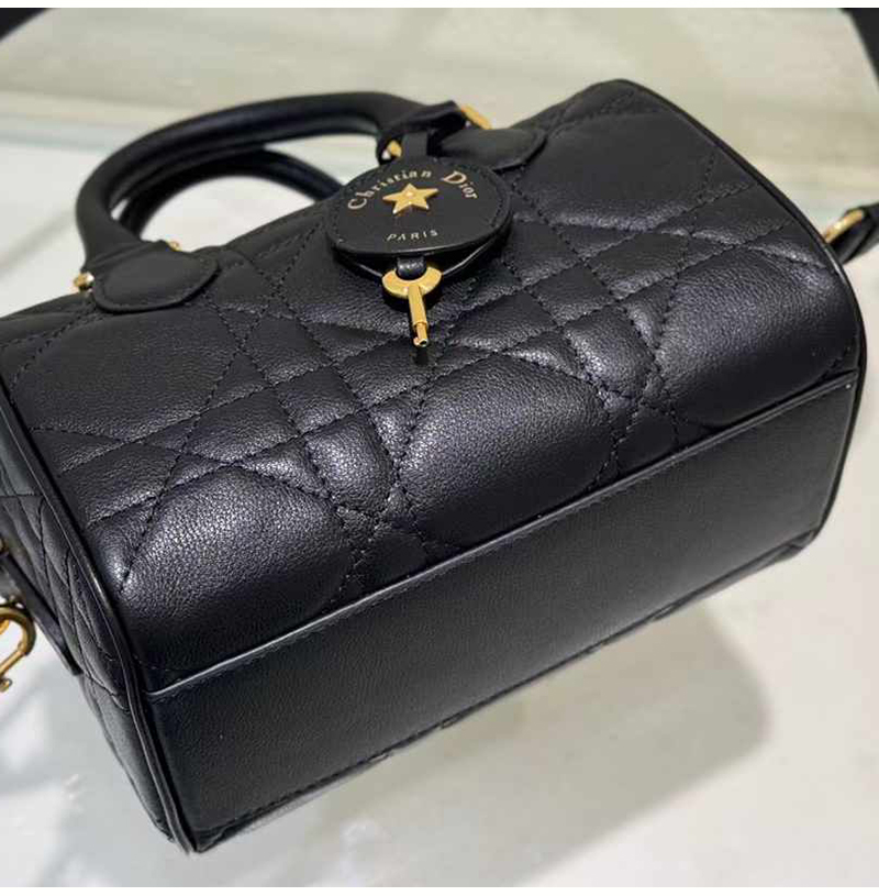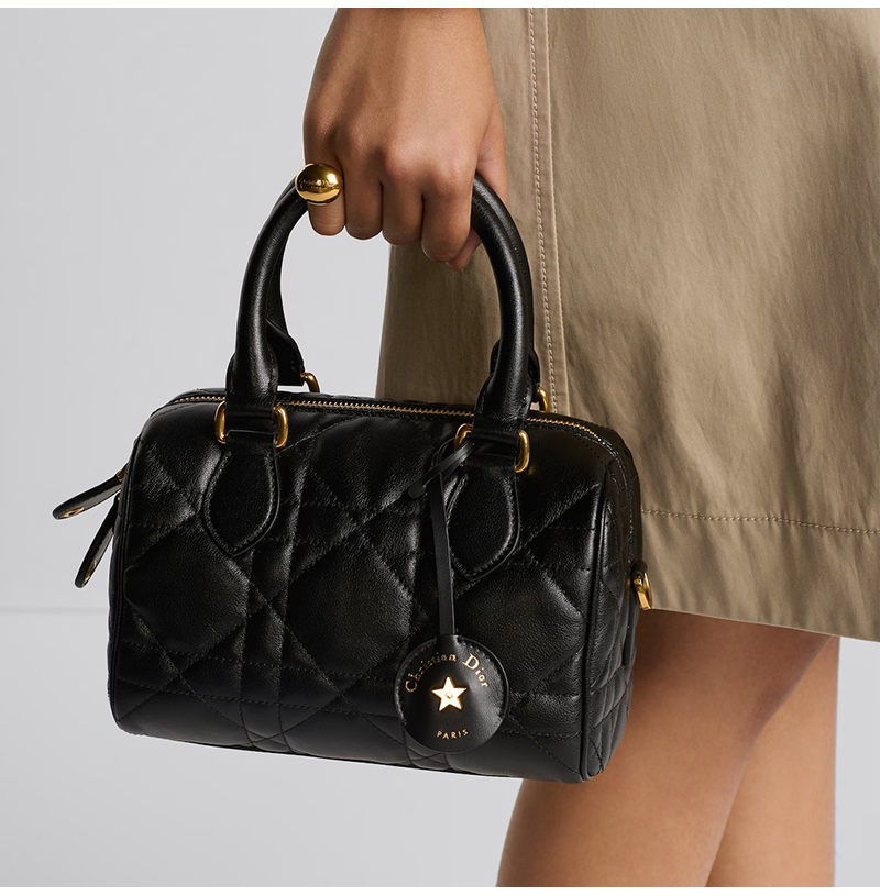2024겨울 시즌에 새롭게 선보이는 아이템으로,마리아 그라치아 치우리가 디자인한 우아하고 모던한 스타일 Dior Groove 20 백 입니다. 디올 하우스의 노하우가 고스란히 녹아 있는 디자인으로, 퀼트 매크로까나쥬 모티브의 블랙 송아지 가죽 소재로 제작되었으며 Christian Dior Paris 시그니처와 골드 피니시 별 디테일의 가죽 열쇠 홀더가 특징입니다. 길이 조절 가능한 탈착식 스트랩,가죽 탑핸들로 완성된 백으로 데일리 핸드백, 숄더백, 크로스백으로 연출하기 좋습니다.