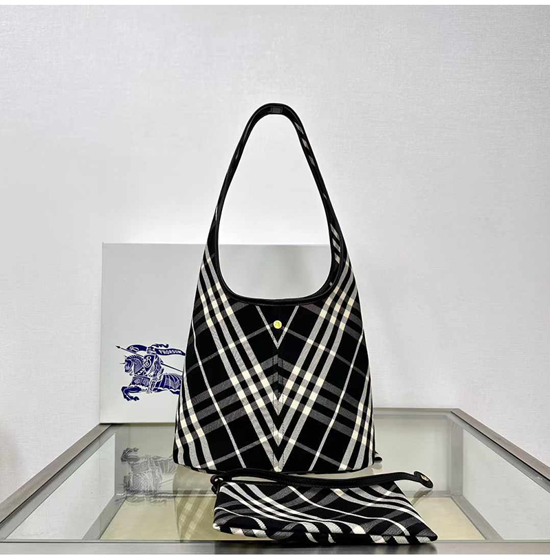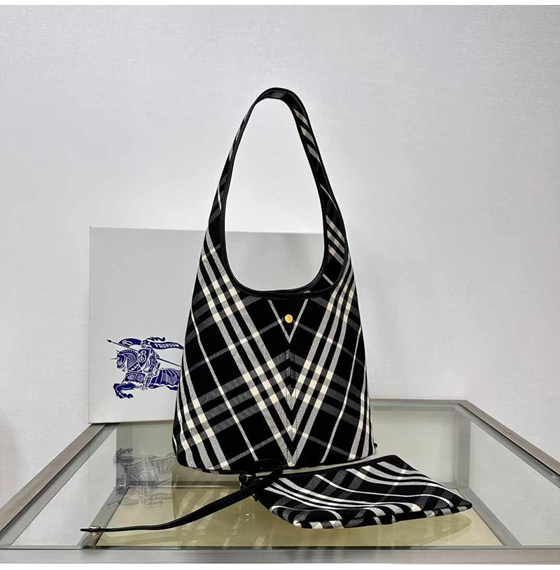 [스페셜오더]Burberry-버버리 블랙 코튼 체크 스몰 숄더 백 26.5cm - 80946791