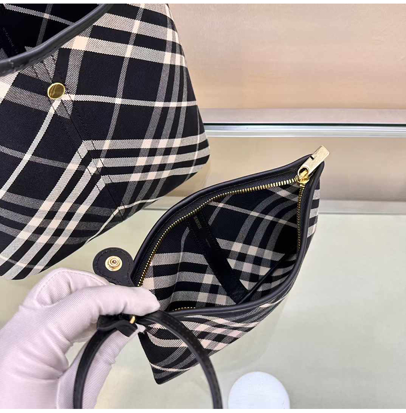 [스페셜오더]Burberry-버버리 블랙 코튼 체크 스몰 토트 백 26cm - 80946861