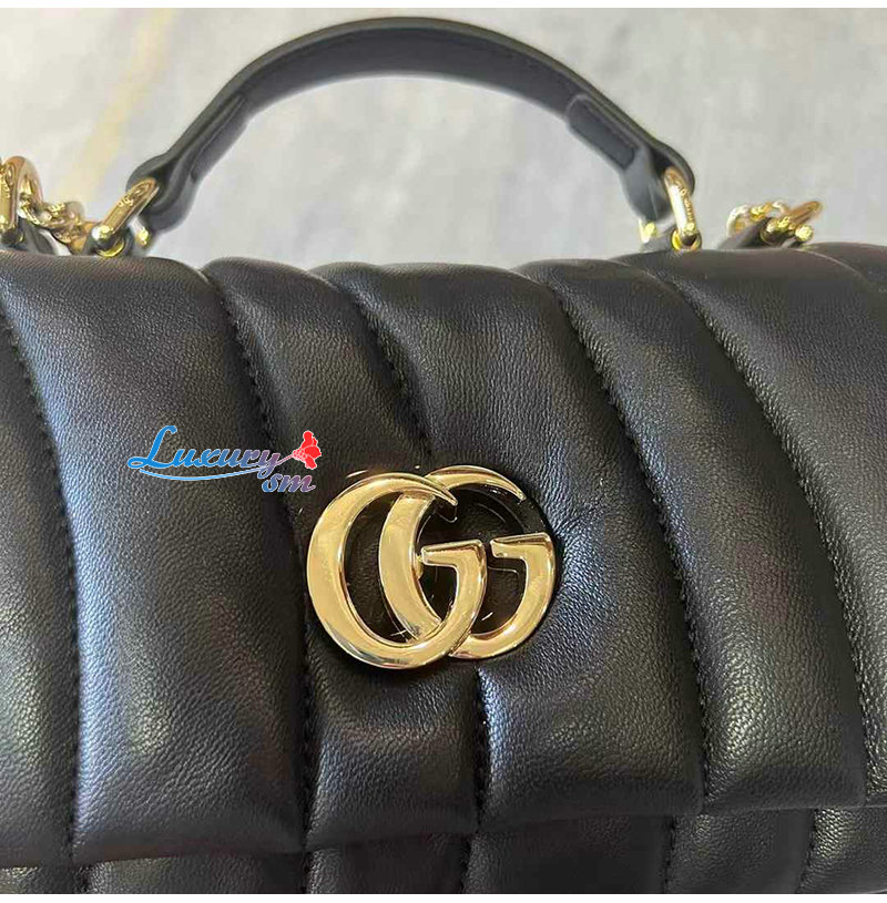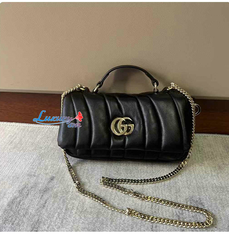 [스페셜오더]GUCCI-806017 1000 구찌 블랙 패딩 퀼티드 레더 GG 밀라노 미니 탑 핸들백