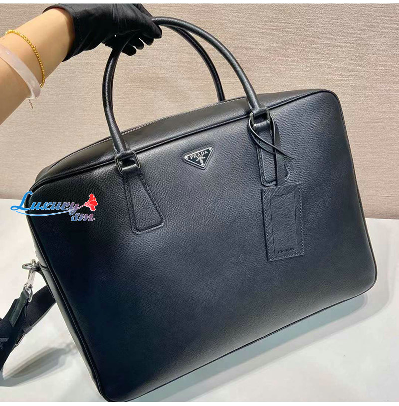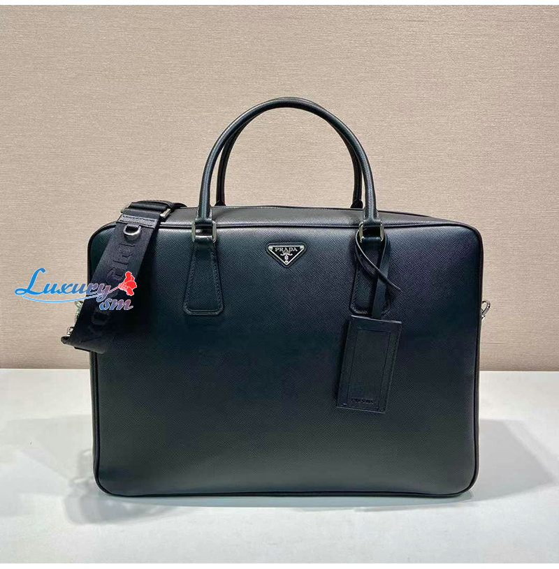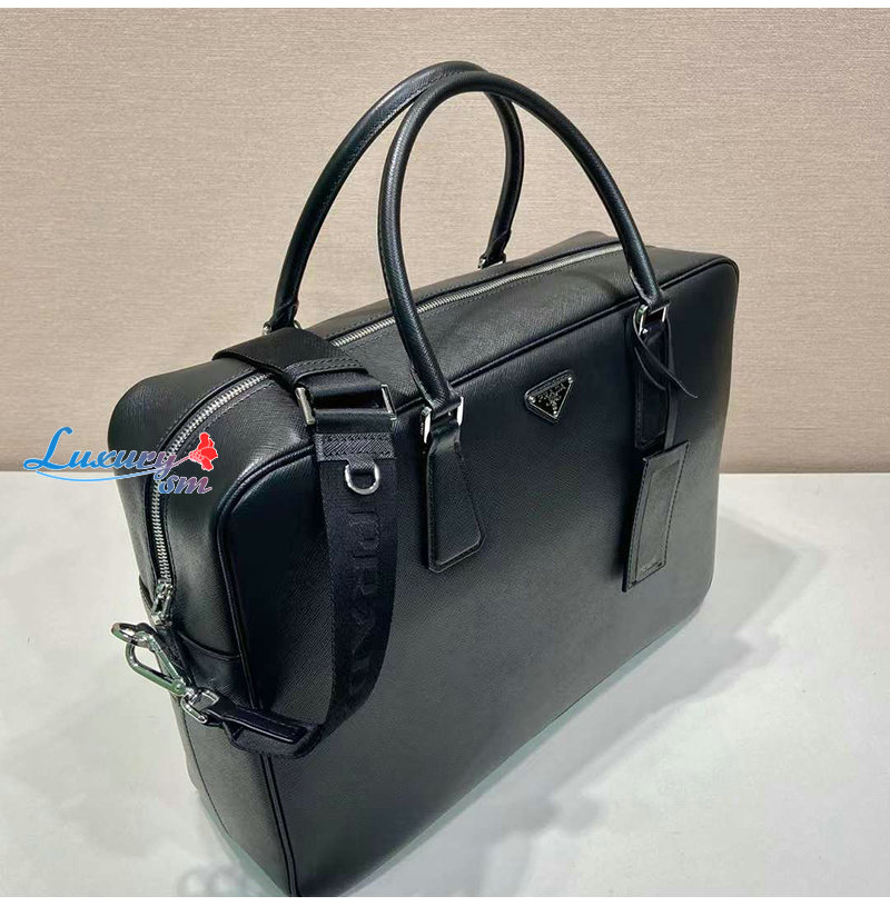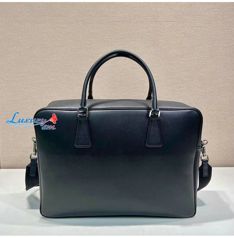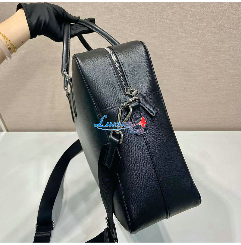 [스페셜오더]PRADA-2VE026 프라다 블랙 사피아노 가죽 브리프케이스
