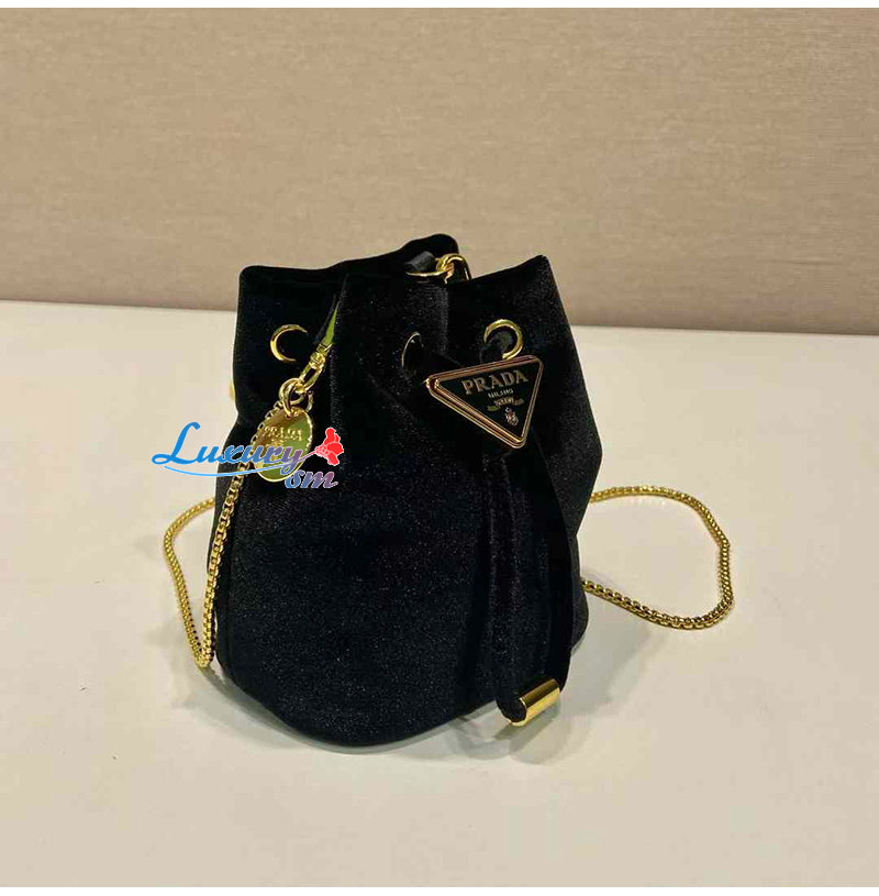 PRADA-1NR016 프라다 블랙 벨벳 미니 파우치