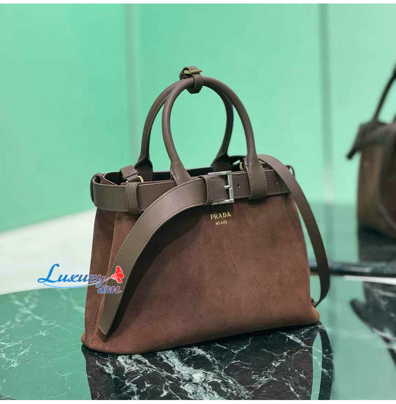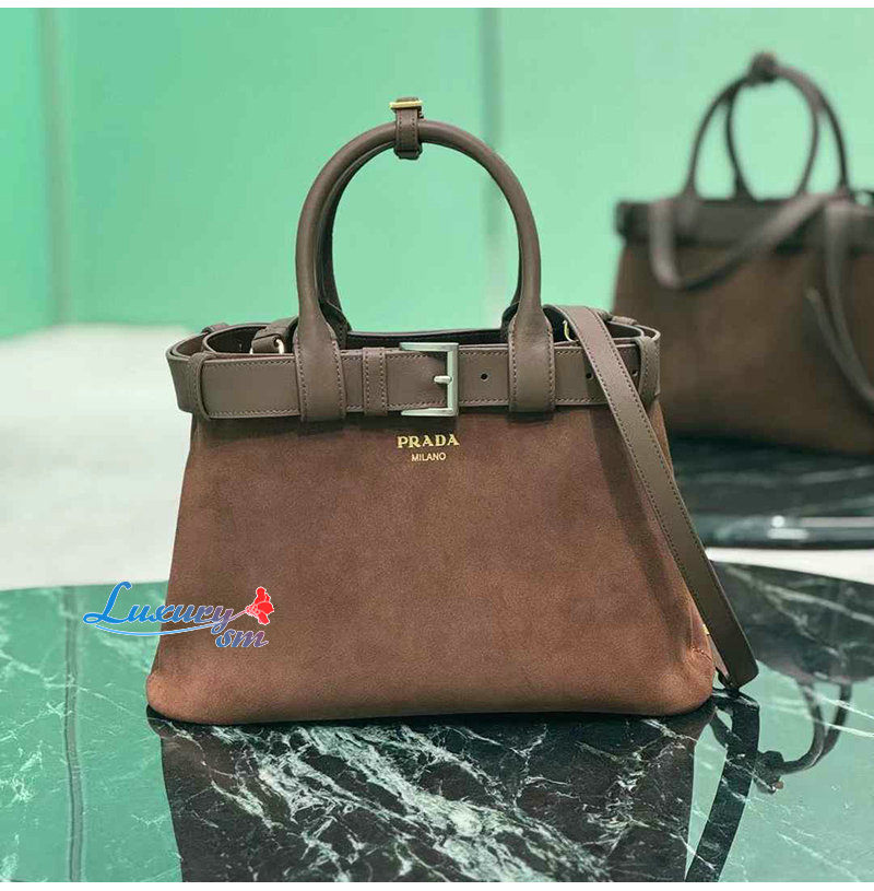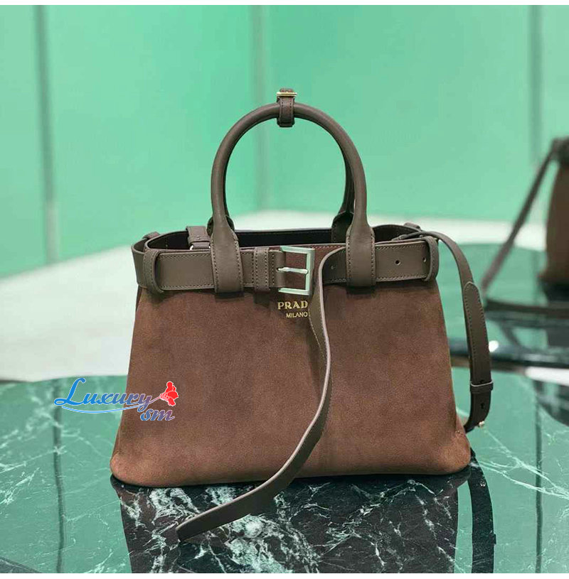 [스페셜오더]PRADA-1BA434 프라다 다크 브라운 미디엄 스웨이드 프라다 버클 백