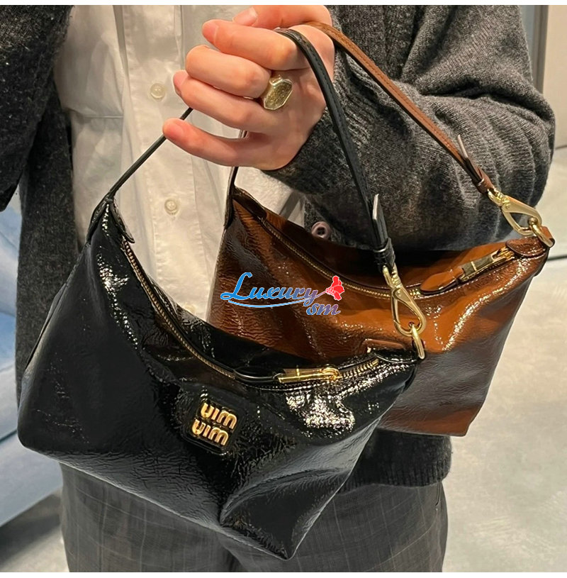 [스페셜오더]MIUMIU-5NE841 미우미우 브라운 페이턴트 나파 가죽 파우치