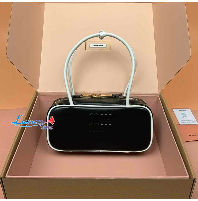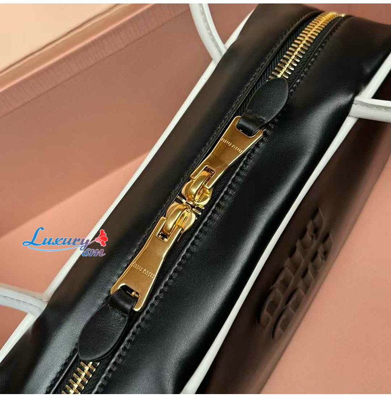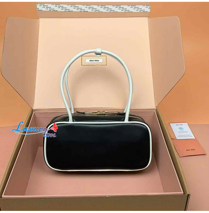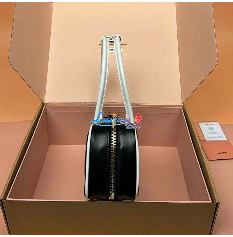 [스페셜오더]MIUMIU-5BB173 미우미우 블랙/화이트 송아지 가죽 보 백