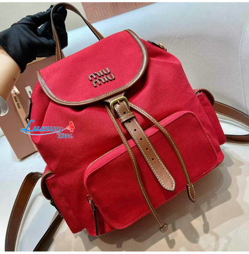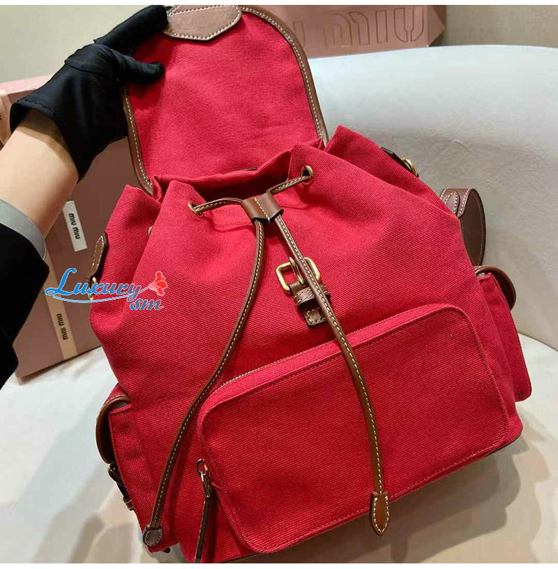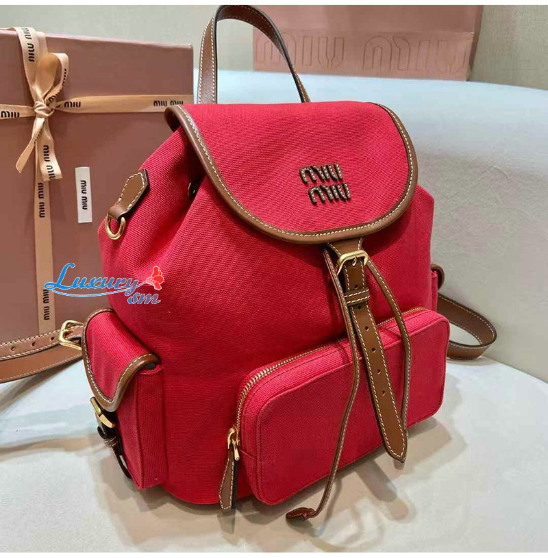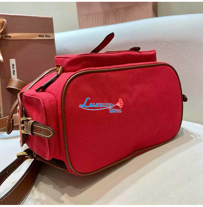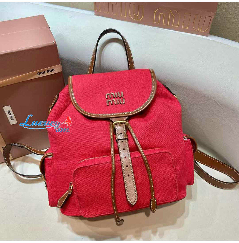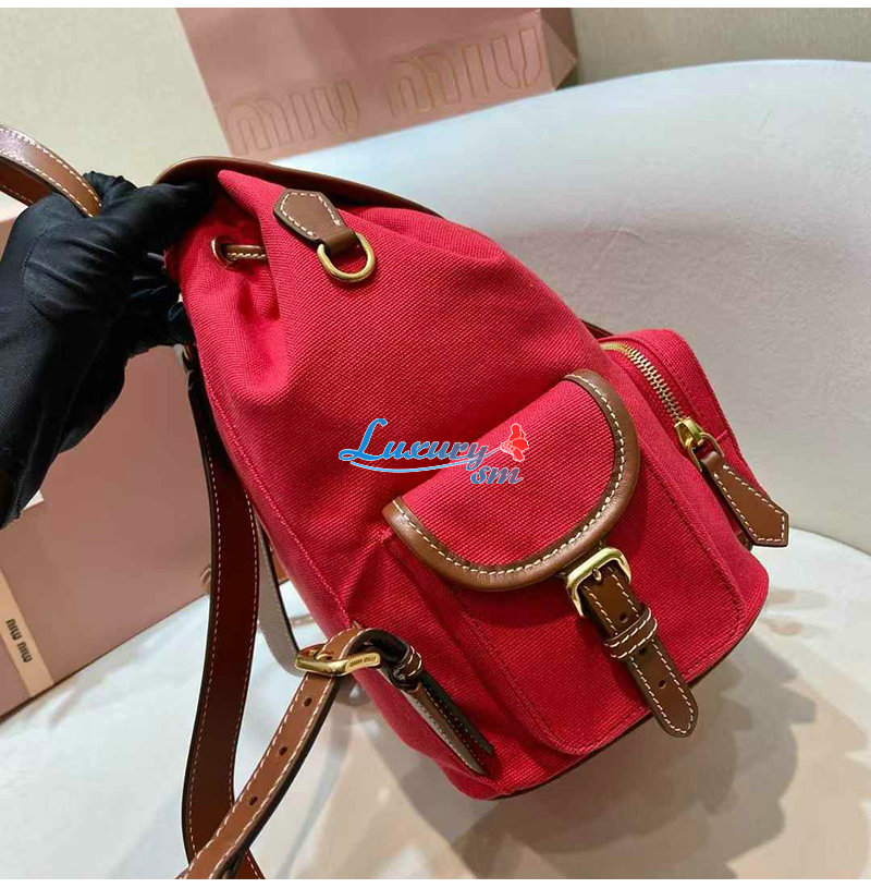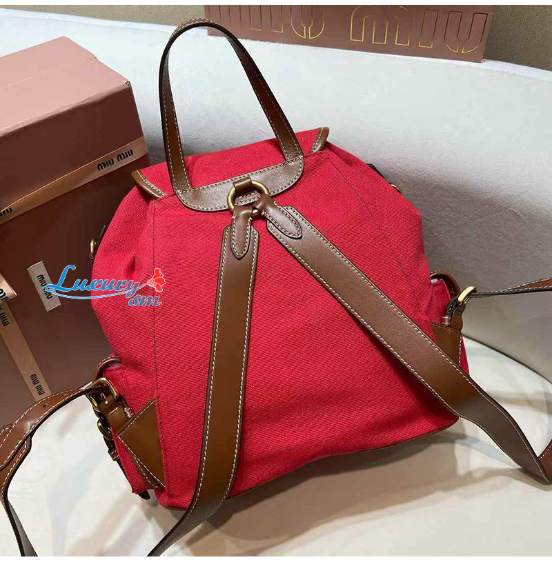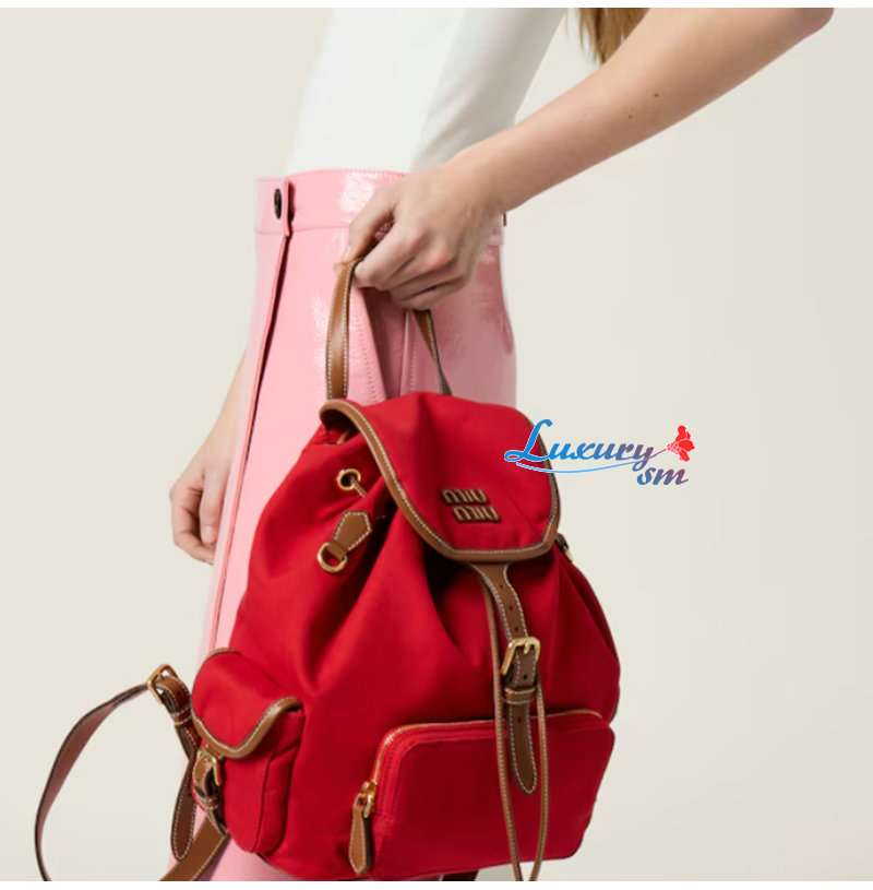 [스페셜오더]MIUMIU-5BZ042 미우미우 레드 캔버스 가죽 백팩 미듐