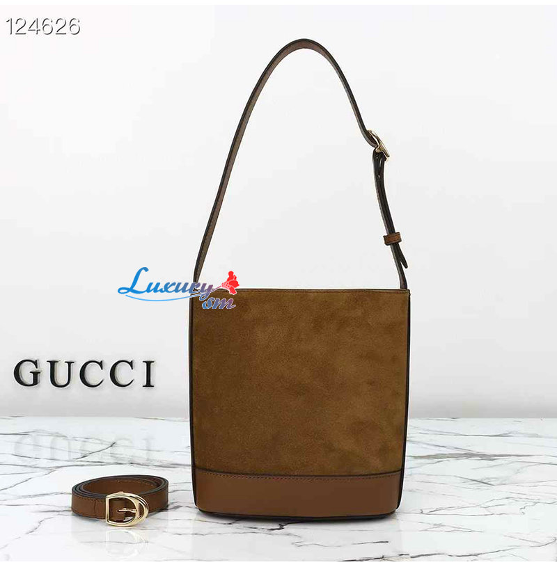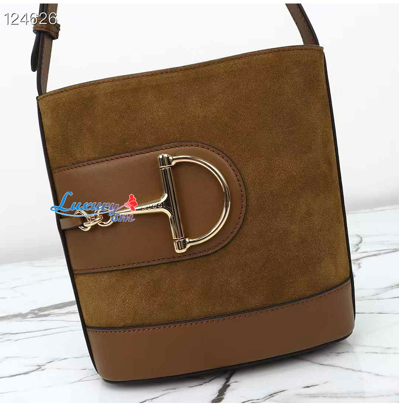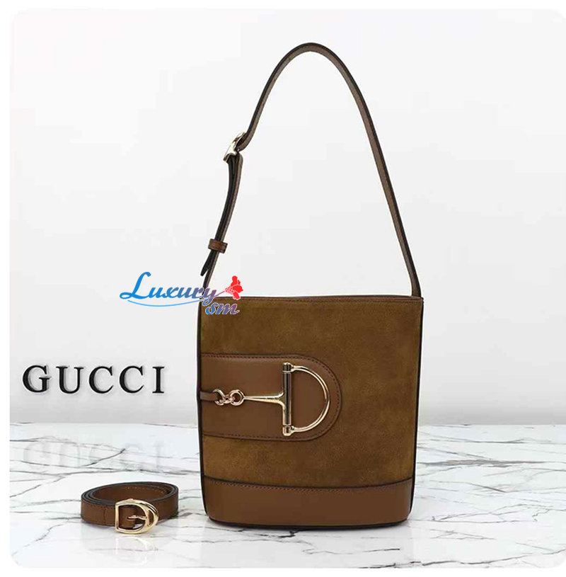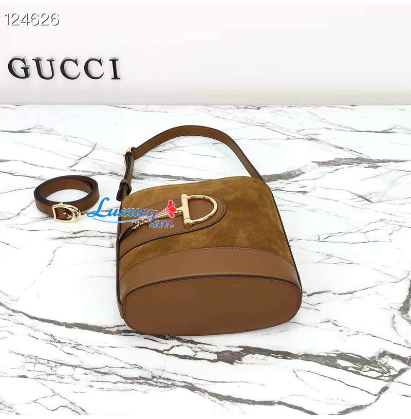 [스페셜오더]GUCCI-833665 2718 구찌 브라운 스웨이드 구찌 73 스몰 버킷백