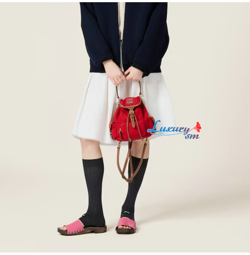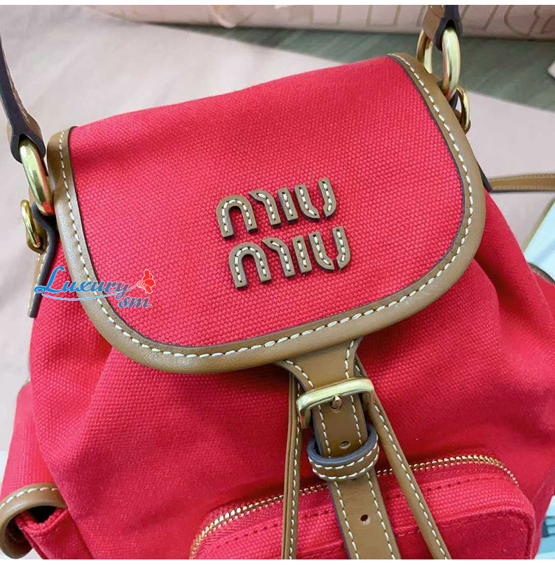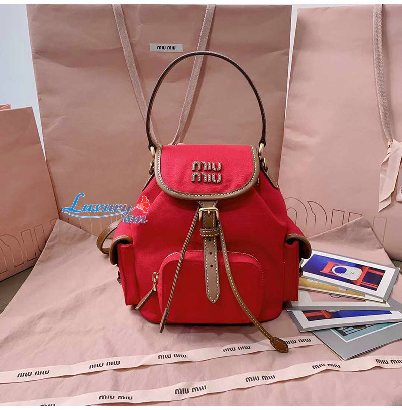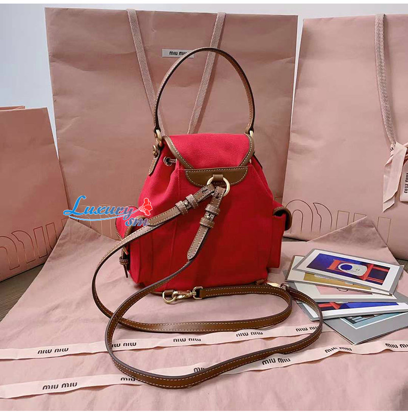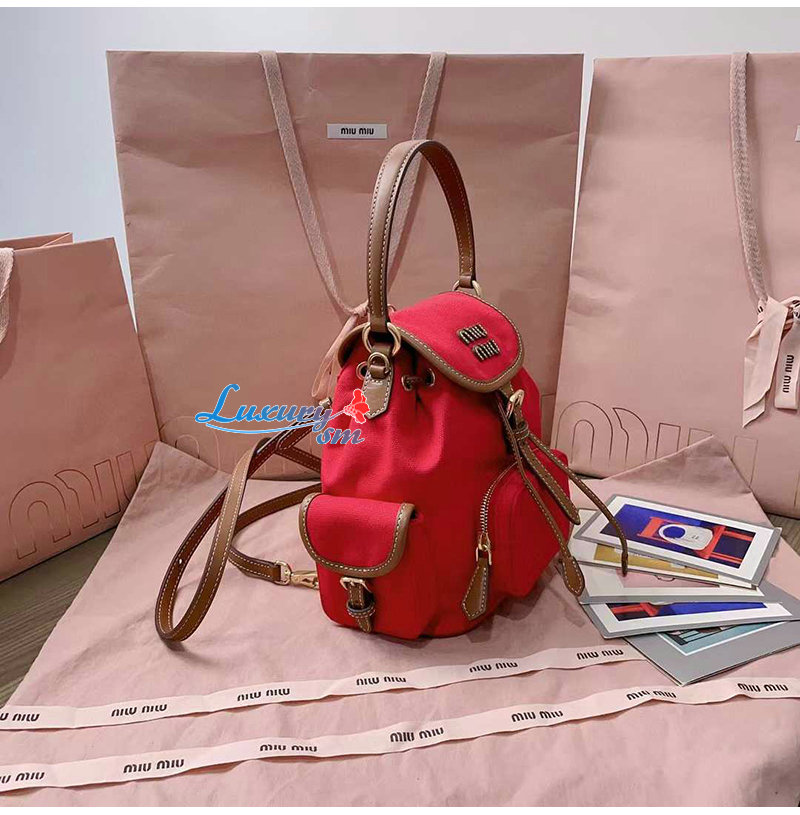 [스페셜오더]MIUMIU-5BZ043 미우미우 레드 캔버스 가죽 백팩 스몰