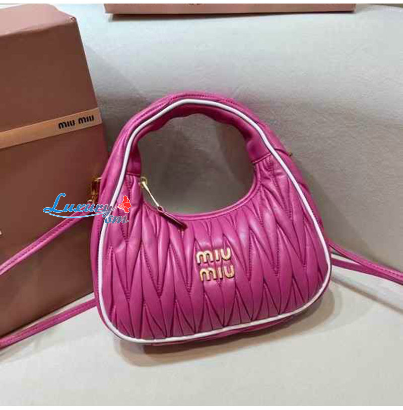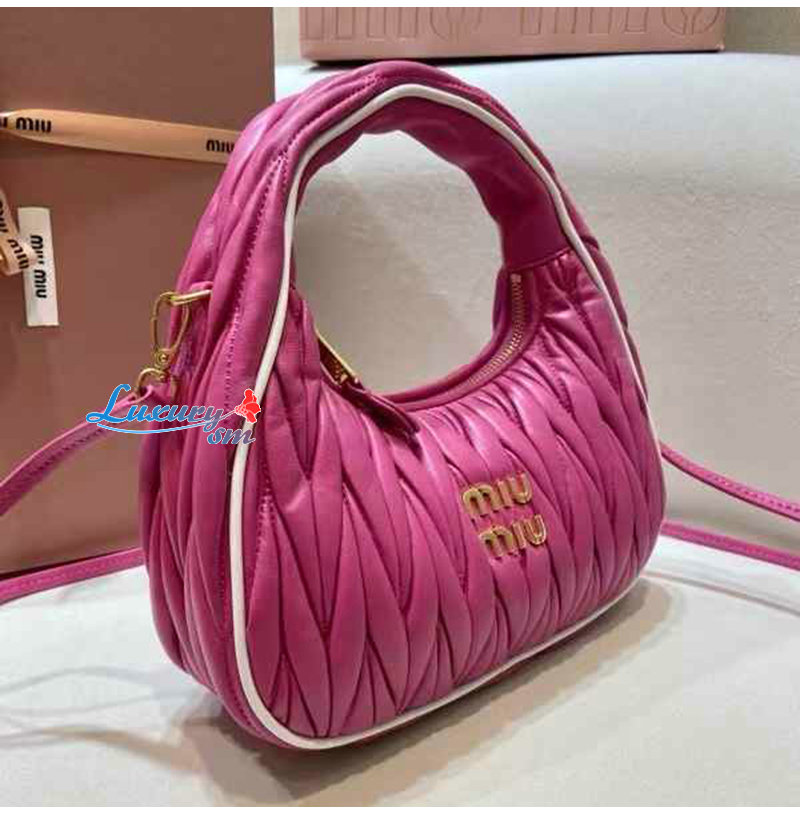 [스페셜오더]MIUMIU-5BC125 미우미우 베고니아 핑크 완더 마테라쎄 나파 가죽 호보 스몰 숄더백