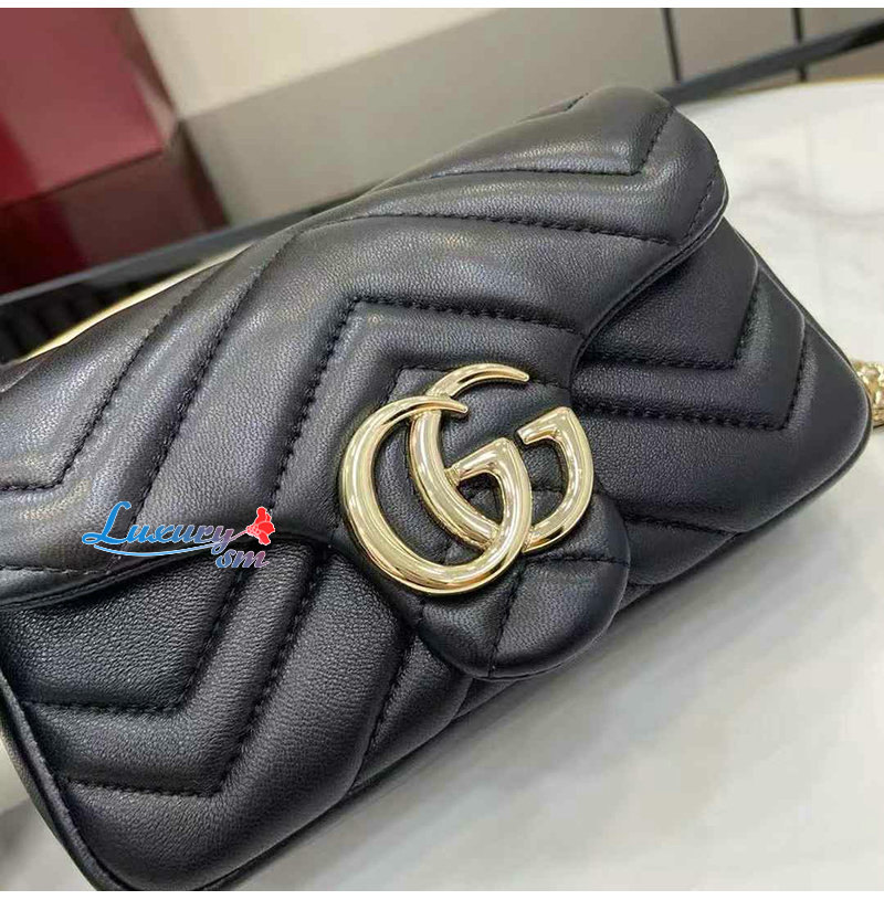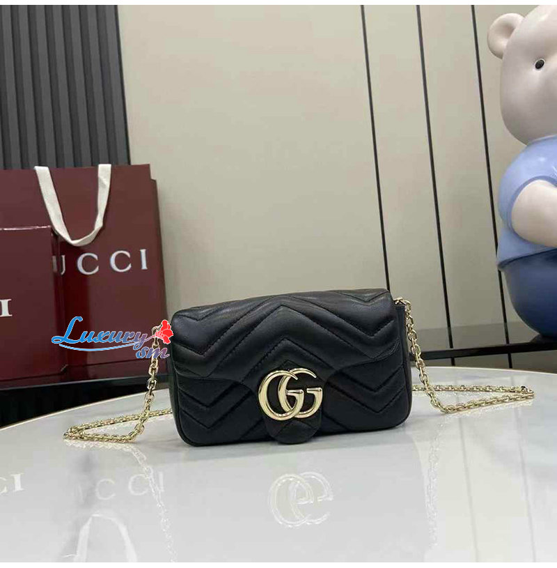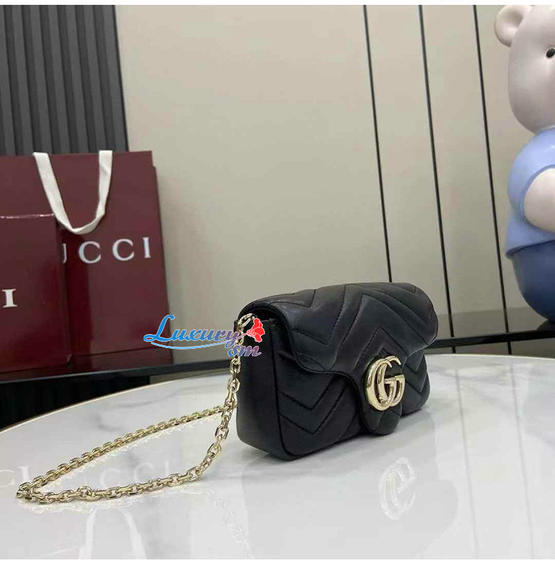 [스페셜오더]GUCCI-841290 1000 구찌 블랙 가죽 GG 마몽 미니 숄더백