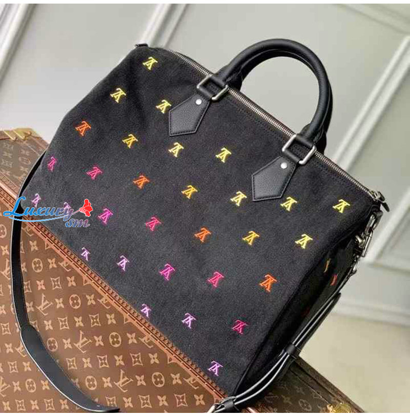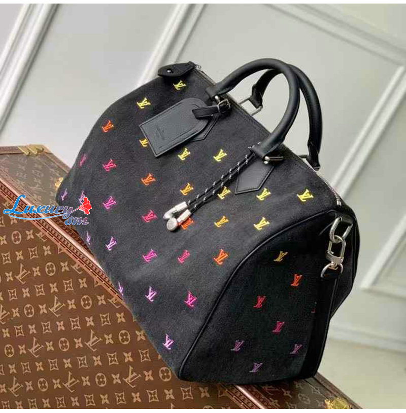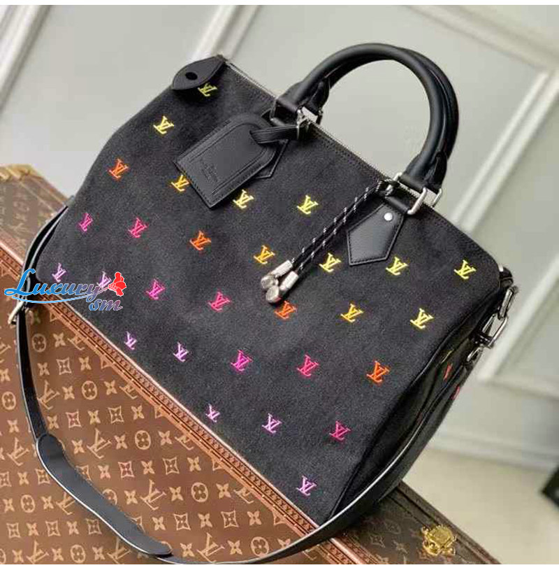 [스페셜오더]LOUIS VUITTON-M14136 루이비통 블랙 LV 블라종 데님 스피디 반둘리에 40