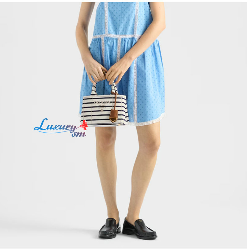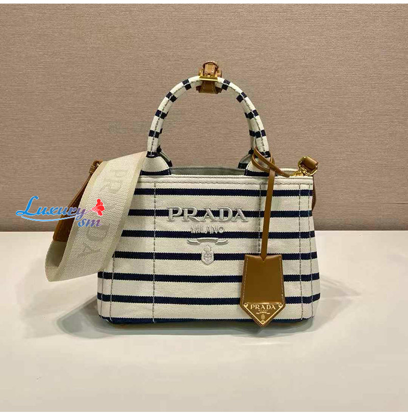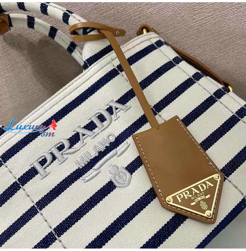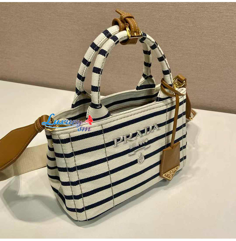 [스페셜오더]PRADA-1BA038 프라다 블루 스트라이프 코튼 캔버스 미니백